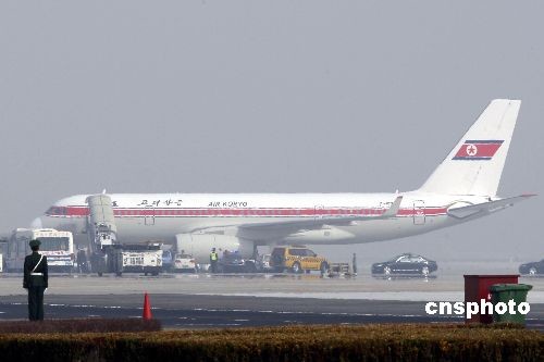 3月17日,朝鲜民主主义人民共和国内阁总理金英日乘专机抵达北京首都国际机场。应国务院总理温家宝邀请,金英日当日上午抵达北京,开始对中国进行为期5天的正式友好访问。据悉,此访是金英日就任总理后首次访华。中新社发 盛佳鹏 摄