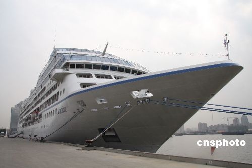 曾险遭索马里海盗劫持的马绍尔群岛籍豪华邮轮“娜蒂卡”号,3月18日驶抵上海国际客运中心。船方表示,尽管曾遇海盗袭击,船方表示,并不打算改变邮轮航线。据悉,该邮轮已是上海港的“常客”,此次从日本来沪,载有欧美旅客五百四十余名。中新社发 陈静 摄