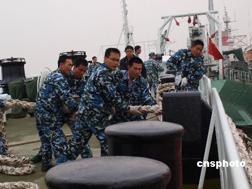 由中国海军南海舰队南救五0三船改装的中国最大渔政执法船311号,三月十九日下午抵达三亚,完成首航西沙第一阶段任务。中新社发 郑小红 摄