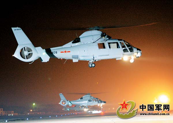 3月19日凌晨2时49分,随着数架舰载直升机飞向夜空,拉开了海军某舰载机部队2009年首次跨昼夜飞行训练的序幕。在历时6个多小时的训练中,直升机先后进行了夜间海上超低空飞行、海上悬停等高难度课目训练。鄢润波摄