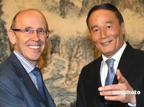 3月25日下午,中国国务院副总理王岐山在北京中南海紫光阁会见英国首相特使、贸易与投资国务大臣戴维斯。中新社发 任晨鸣 摄