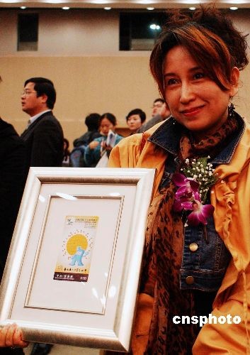三月二十七日,上海世博会门票揭晓仪式,专门为华人华侨回家看世博会而推出的定制票票样首次公开面世,一名应邀出席仪式的侨界代表欣喜地手持门票样本进行展示。“华侨华人回家看世博”组委会与上海世博局签订上海世博会定制票协议。中新社发 张亨伟 摄