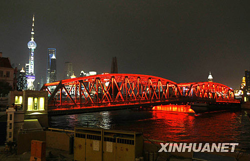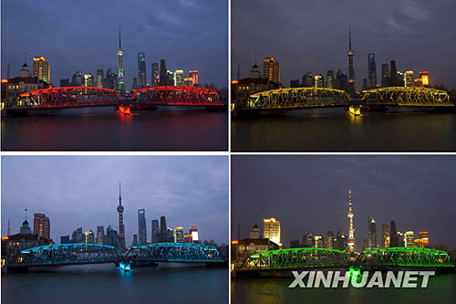 4月2日,上海外白渡桥“城市之光”灯光系统开始全面试灯。新的灯光系统采用全彩LED灯具,不仅可呈现出多种色彩,还大大降低了能耗。据悉,外白渡桥正式亮灯通车仪式将在4月10日举行。裴鑫 摄