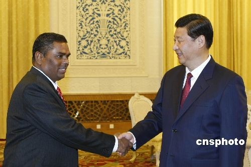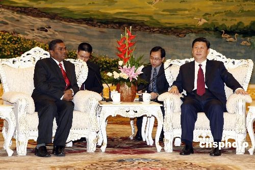 4月7日,中国国家副主席习近平在北京人民大会堂会见尼泊尔外长亚达夫。中新社发 盛佳鹏 摄