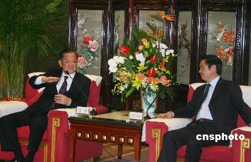 4月8日中午,中共四川省委书记刘奇葆(右)在成都会见了中国国民党荣誉主席连战及其夫人一行。中新社发 霍潺 摄