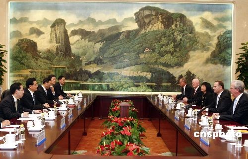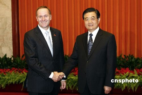 4月14日,中国国家主席胡锦涛在北京人民大会堂会见新西兰总理约翰·基。中新社发 盛佳鹏 摄