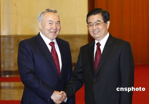 4月16日,中国国家主席胡锦涛在北京人民大会堂举行仪式,欢迎哈萨克斯坦总统纳扎尔巴耶夫。中新社发 盛佳鹏 摄