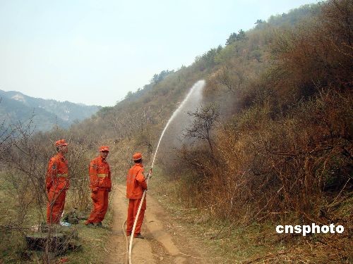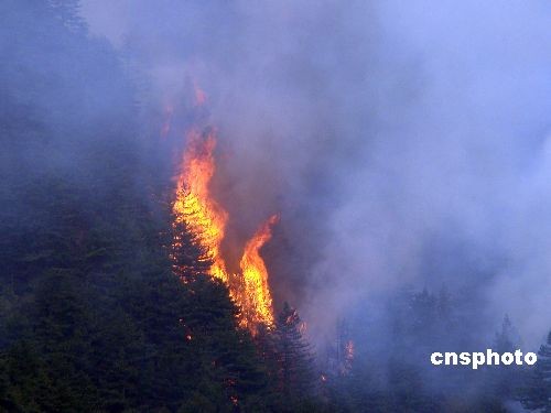 4月28日14时30分左右,位于山西吕梁交城关帝山林区的双家寨发生森林火灾,火场位于会立乡翟家庄村西面的薛池沟内,距离庞泉沟自然保护区仅30公里。截至30日下午17时,火灾救援仍在紧张进行,火灾面积仍在统计中,目前没有伤亡人员,火灾原因仍在调查中。目前当地政府已调集2000余人全部投入救火,其中武警部队500多人、森林消防部队及森林警察300多人以及县里组织的民众1000余人。救援队伍用几百米水管和自带发电机山沟抽水灭火。此外,吕梁市气象局还准备运行炮弹助雨设备进行救援。经过近两天两夜的扑救工作,30上午翟家庄村道灰沟,青年沟的火灾基本控制。 中新社发 高增平 摄