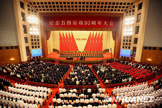 5月4日,纪念五四运动90周年大会在北京人民大会堂举行。姚大伟 摄