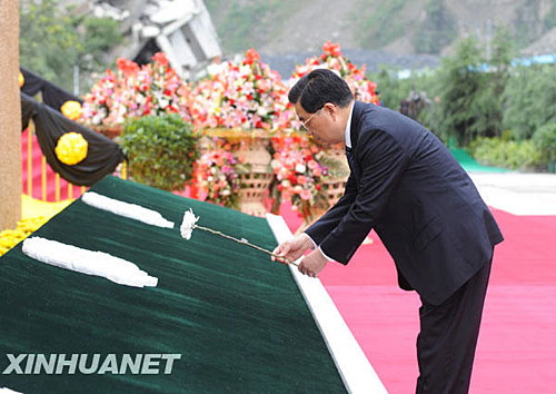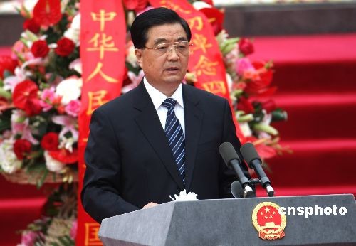 5月12日,纪念汶川特大地震一周年活动在四川省汶川县映秀镇隆重举行。中共中央总书记、国家主席、中央军委主席胡锦涛发表重要讲话并献花。