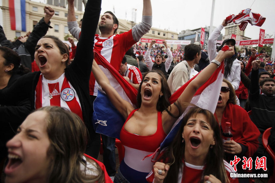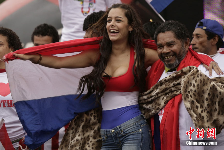 6月29日,巴拉圭点球大战5-3击败日本。著名乳神女球迷拉里萨再度胸夹手机亮相,并与日本球迷同乐,疯狂庆祝尽显激情狂野。