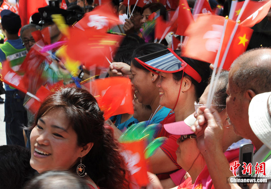 7月1日,香港特别行政区在金紫荆广场隆重举行升旗仪式﹐庆祝香港特别行政区成立十三周年。中新社发 郑祚声 摄