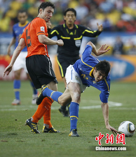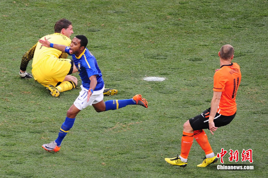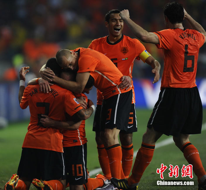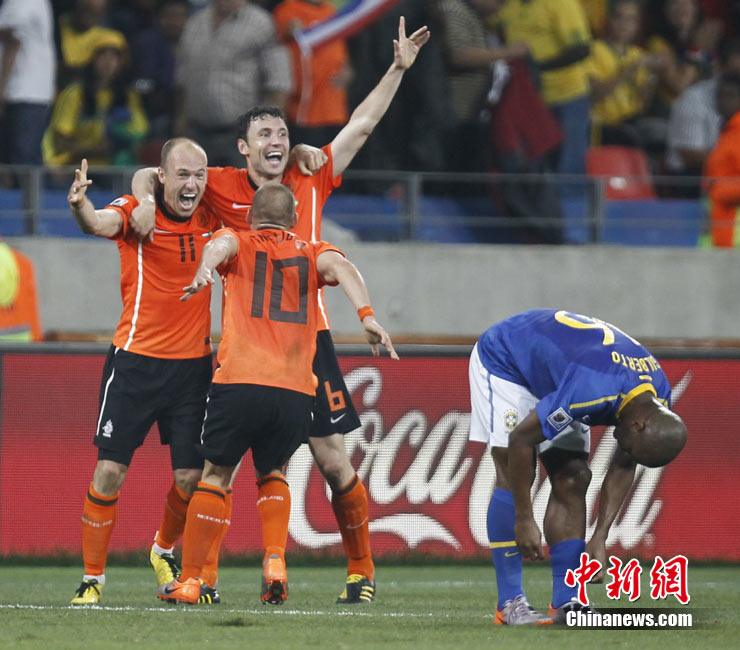 7月2日晚,南非世界杯进行了1/4决赛的首场比赛,由荷兰队迎战巴西。虽然罗比尼奥在上半场率先破门,但下半场凭借胡安的乌龙球和斯内德头槌建功,荷兰队2-1逆转击败巴西队,率先挺进四强。