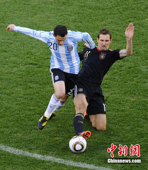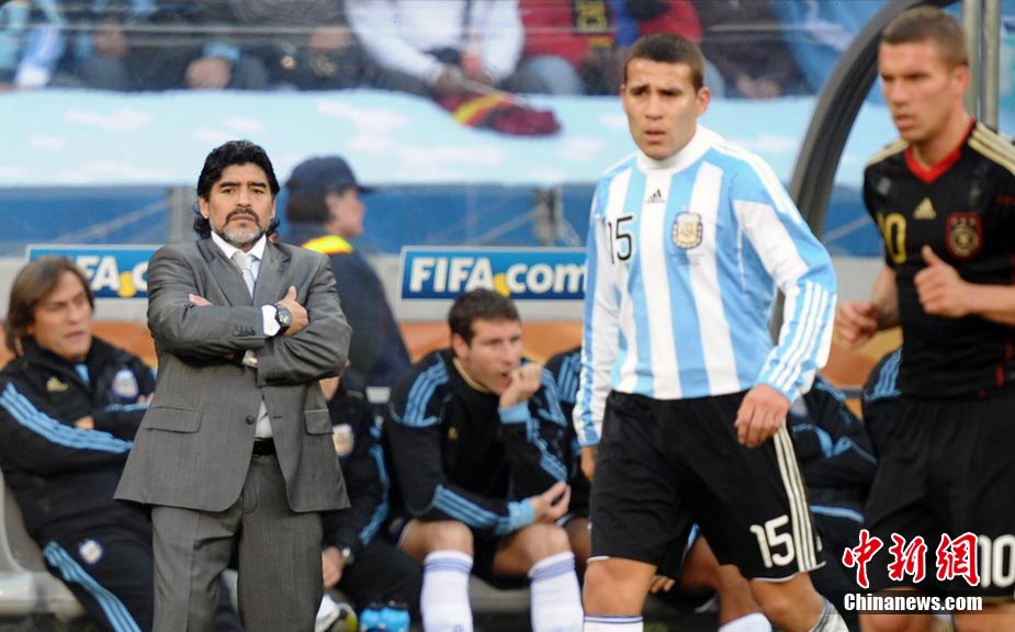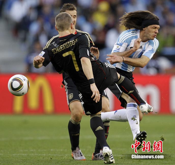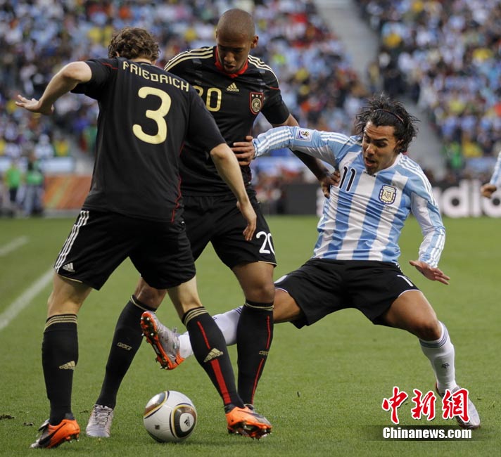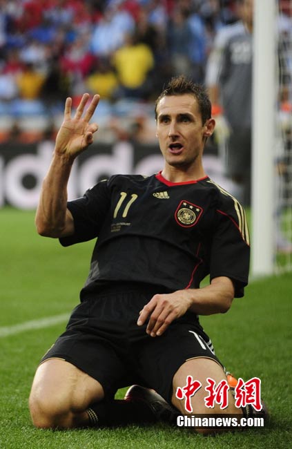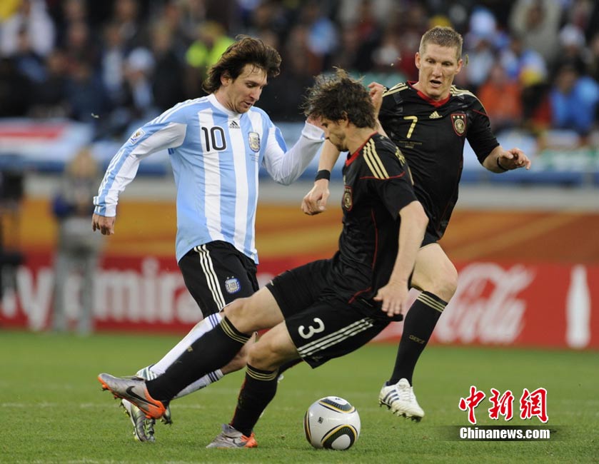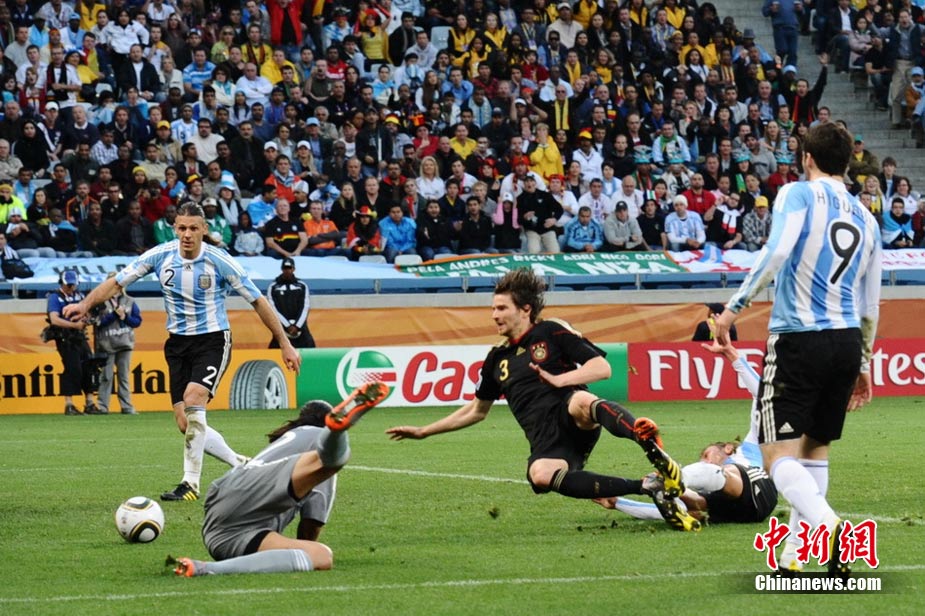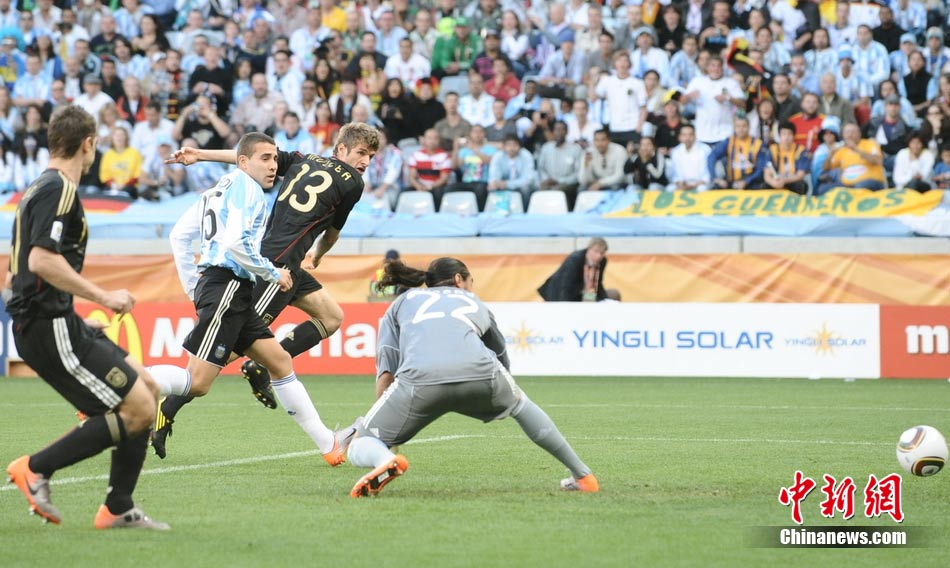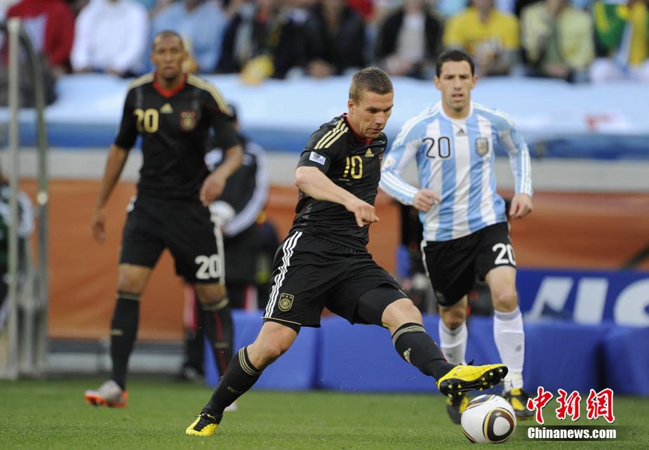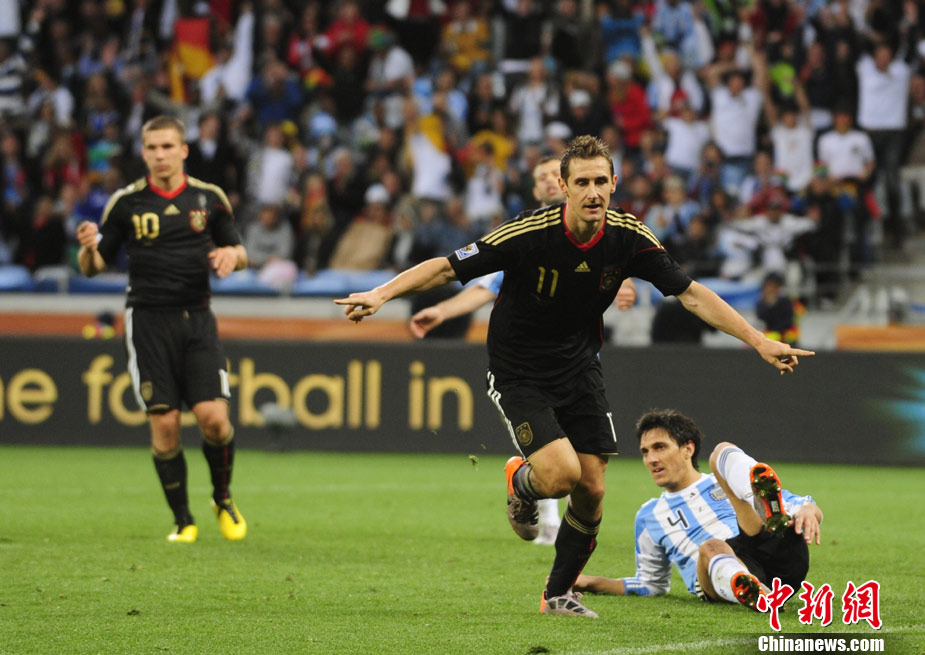 7月3日晚,南非世界杯1/4决赛第三场展开了角逐,阿根廷队在开普敦绿点球场迎来了德国队的挑战。穆勒在上半场第3分钟先拔头筹,下半场克洛泽梅开二度,弗雷德里希也打入一球,德国队4-0狂胜阿根廷,昂首晋级半决赛。