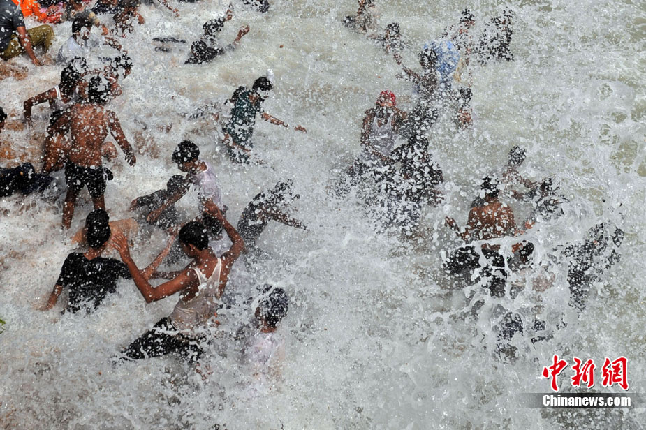 近日,北半球多个国家遭受高温热浪袭击,美欧亚多国纷纷进入酷夏。图为在法国,难耐酷热的群众在喷泉中享受清凉。