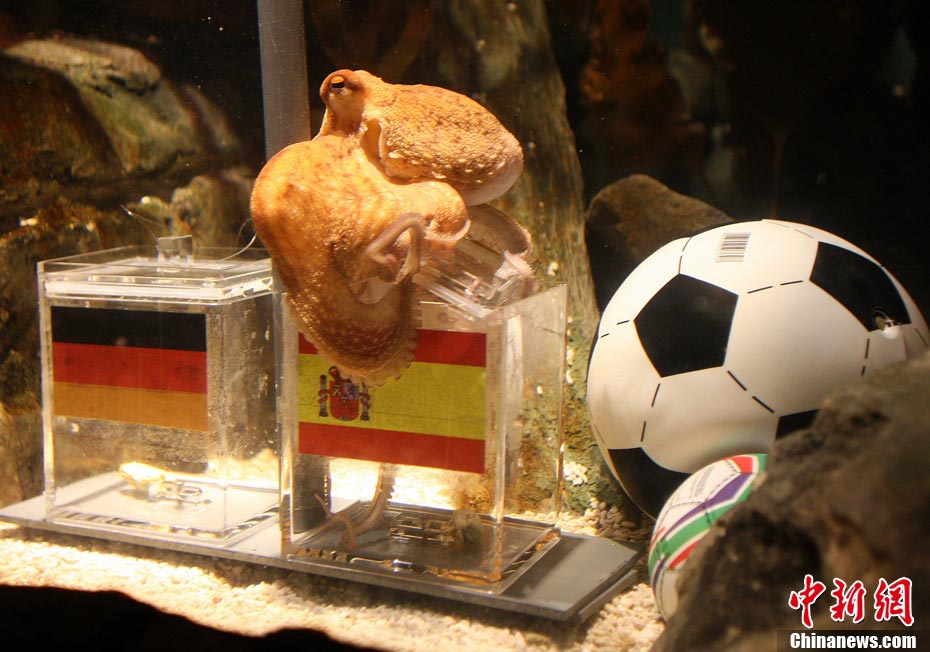 7月6日下午,德国某水族馆的章鱼保罗再次出动,对世界杯半决赛德国与西班牙进行了预测,最终他选择了西班牙。保罗认为欧洲冠军西班牙将在半决赛击败势头强劲的德国队进入决赛。《图片报》网站的直播员在公布结果的同时说道:“希望勒夫的小伙子们能扭转局势,拯救这场半决赛。”或许,对于德国球迷来说还有一个自我安慰的理由:保罗在2008年欧锦赛上预测的准确率是80%,并且唯一错的就是决赛与西班牙之战。他们或许已经开始期待:两年后的世界杯预测不要百发百中,至少在半决赛时错一次。