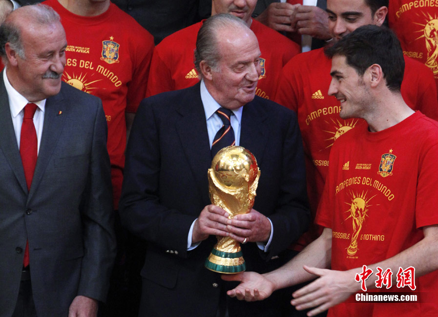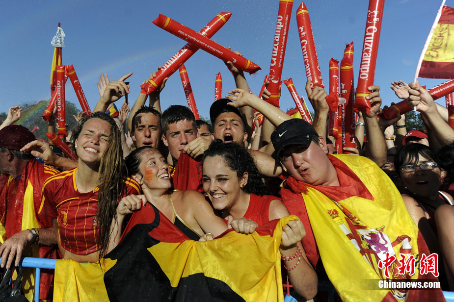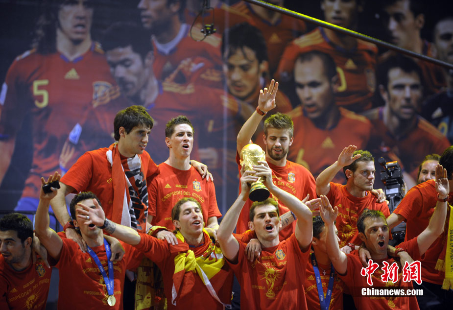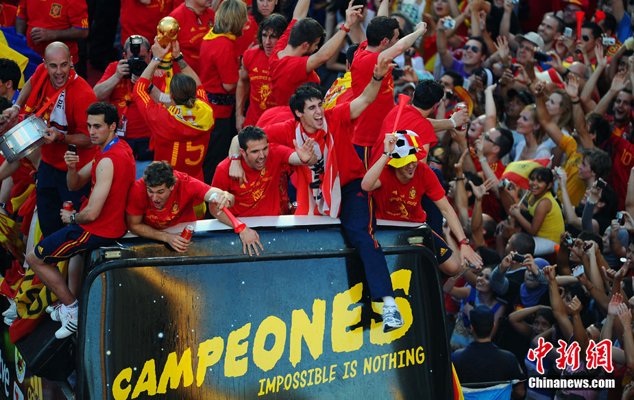 7月12日,在西班牙马德里,首次夺得世界杯冠军的西班牙国家队载誉归国,并进行夺冠后的游行。