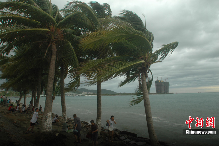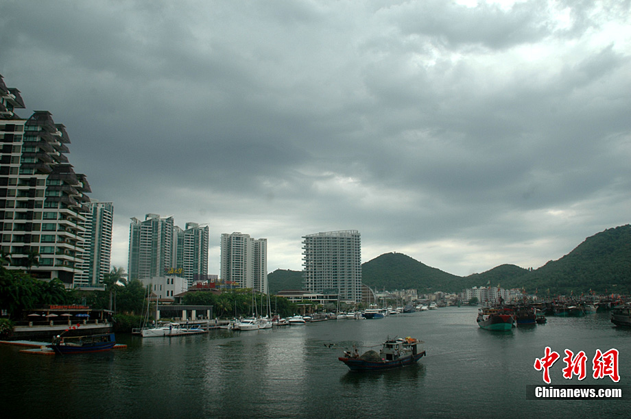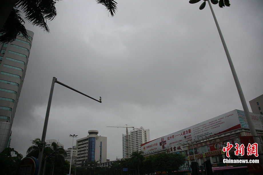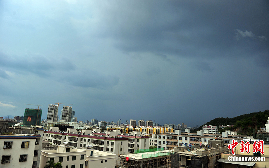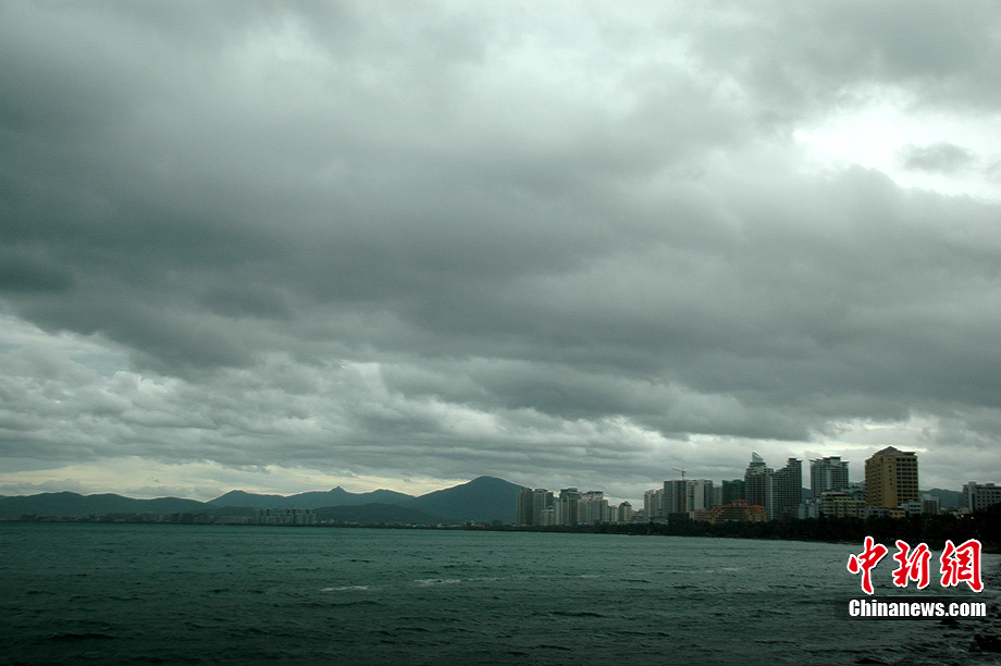 7月15日,海南三亚上空乌云密布。海南省气象台当日下午17时发布的天气预报称:今年第2号强热带风暴"康森",下午2点钟抵达距离海南省万宁市东南方大约440公里的海面,中心附近最大风力10级,风速达到28米/秒,7级大风范围半径150公里,10级大风范围半径30公里,预计"康森"将以每小时20公里左右的速度向西北偏西方向移动,于16日下午到夜间在海南省三亚到文昌一带沿海地区登陆。中新社发 尹海明 摄