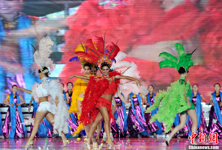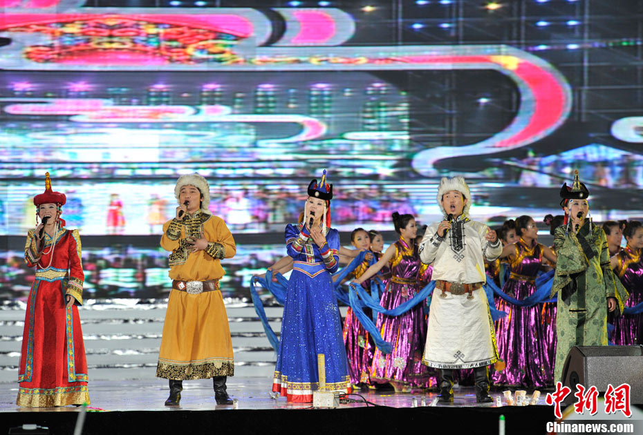 7月16日晚,第十一届中国·呼和浩特昭君文化节在呼和浩特体育场绚丽开幕,充分展现了塞外青城的独特魅力。中新网记者 金硕 摄