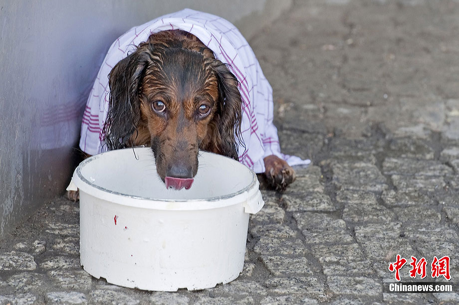 7月14日,德国克龙贝格动物园内的小熊猫忍受着酷热。