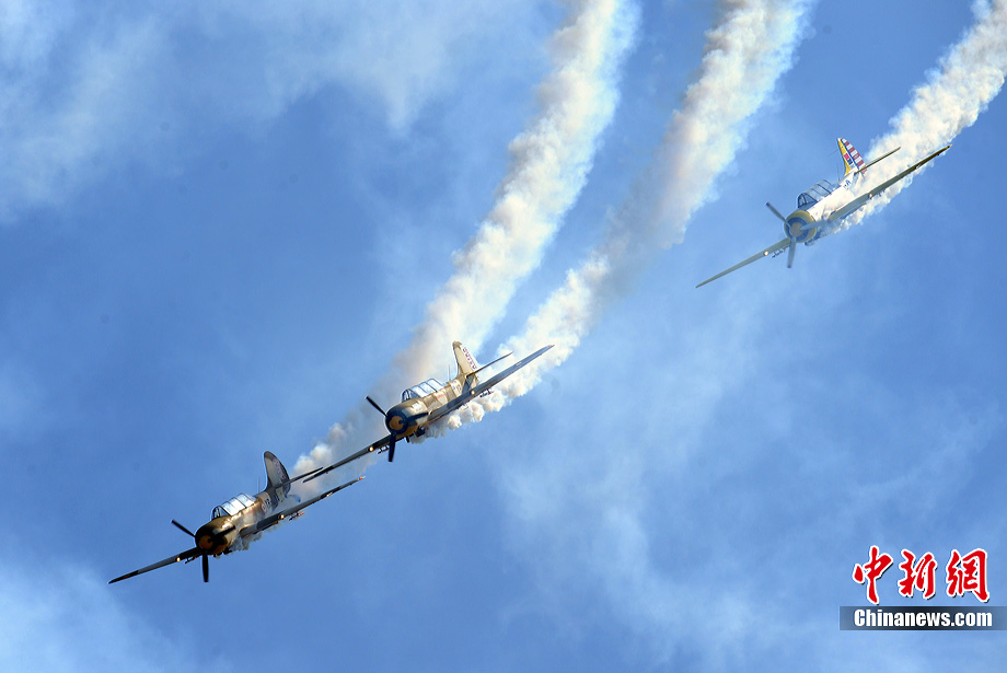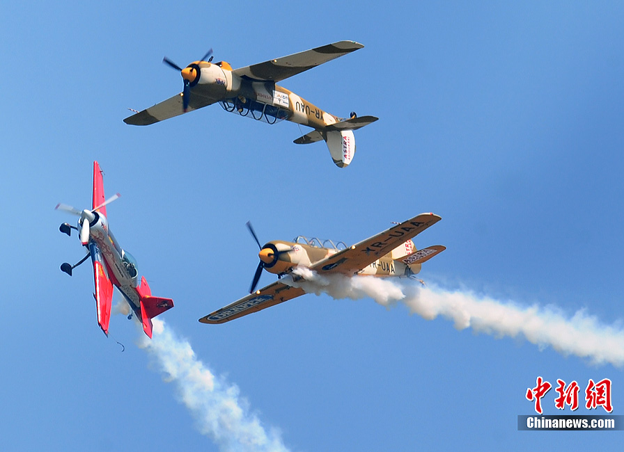 当地时间7月17日,来自世界各地60多架老式飞机参加了在罗马尼亚首都布加勒斯特北郊亨利·科安达国际机场举行的2010飞行表演。
