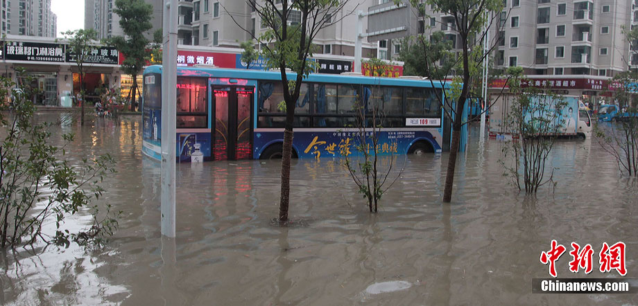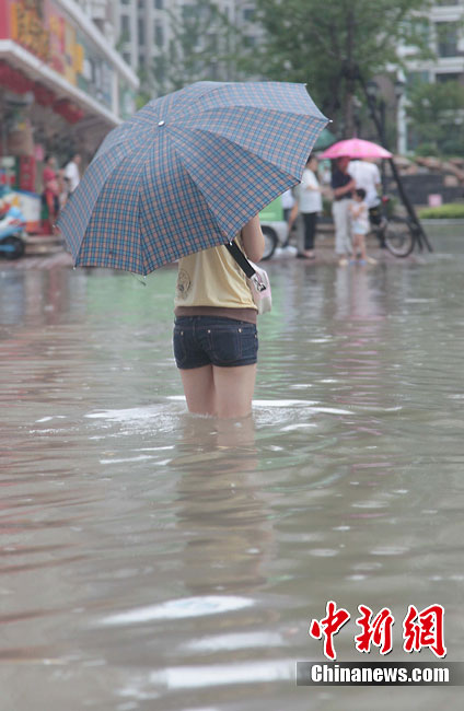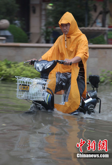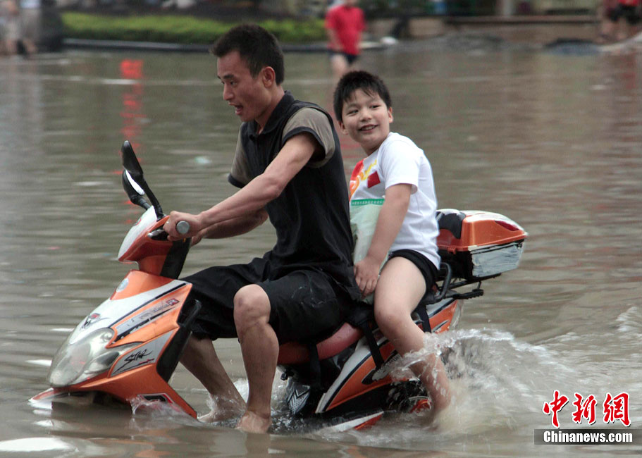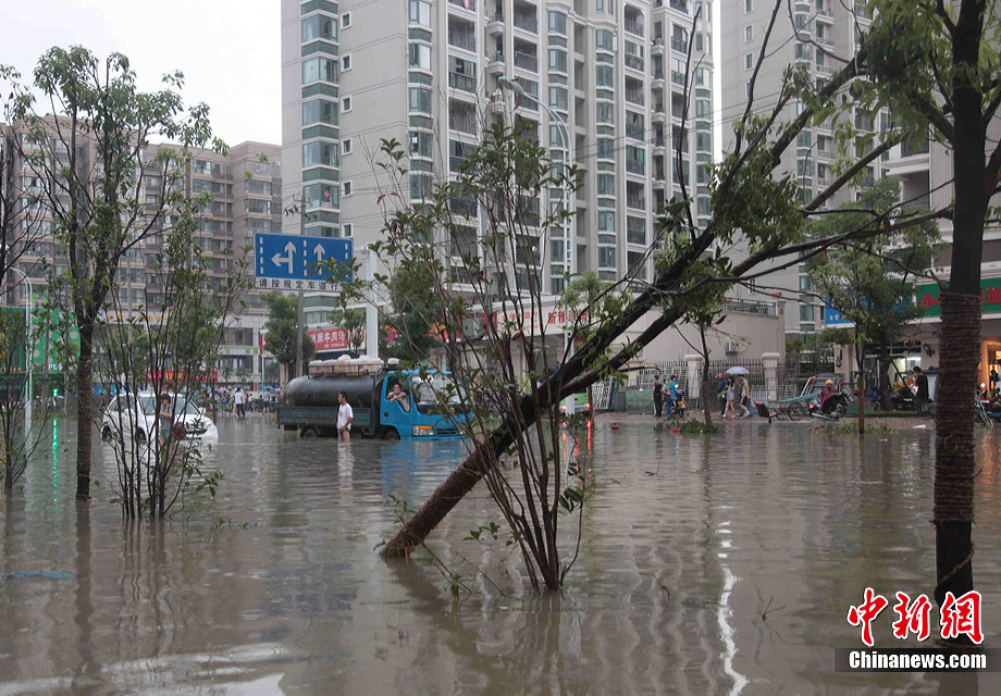7月18日下午,安徽合肥降大暴雨,风力达7-8级,导致市区多处内涝,市内交通严重堵塞。淮河防总17日发布预警,淮河干流受持续降雨影响,将出现一次较大的洪水过程,淮河流域的降雨和上游来水可能使安徽省面临长江、淮河两线抗洪作战的不利局面。中新社发 张娅子 摄