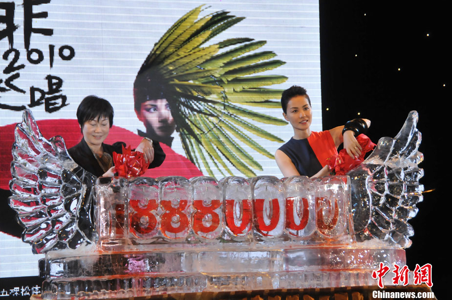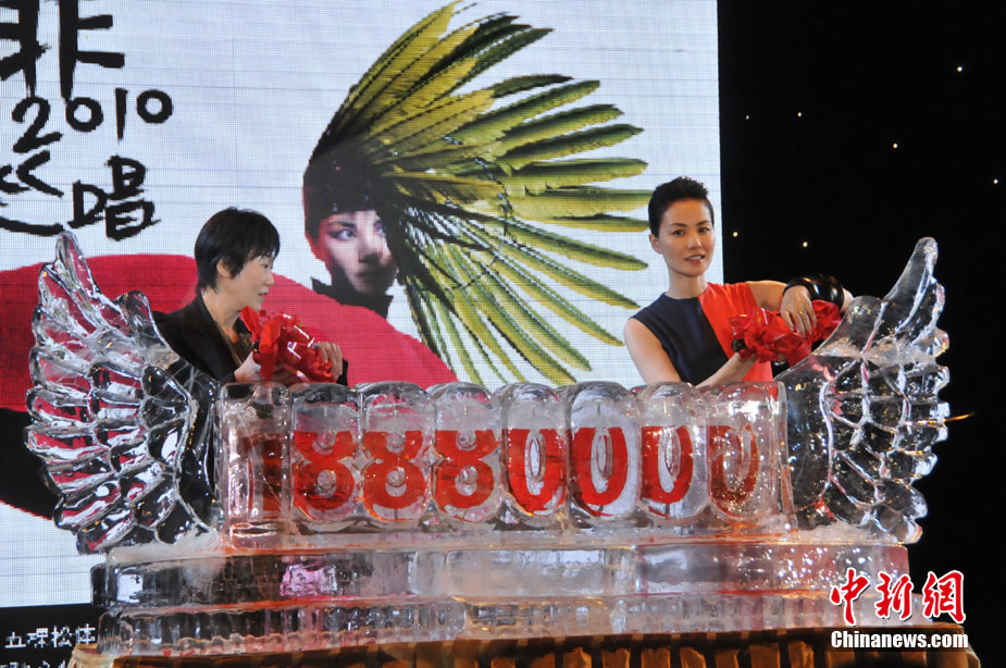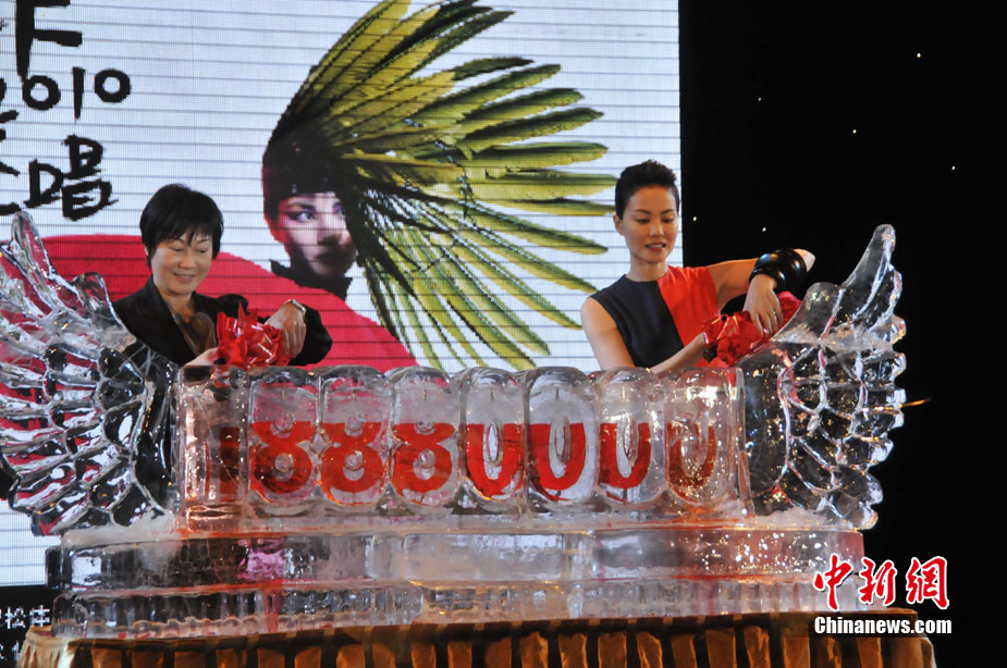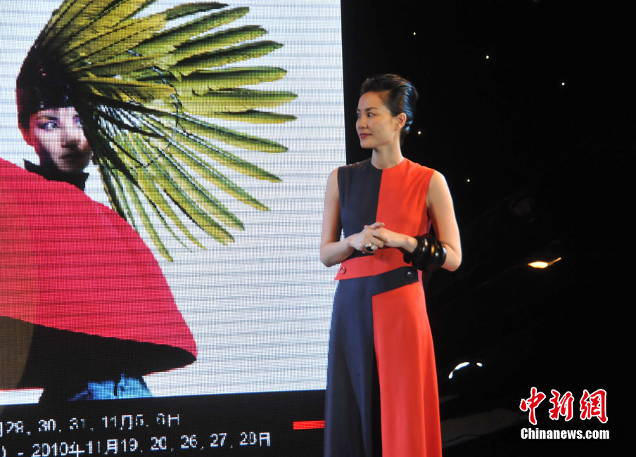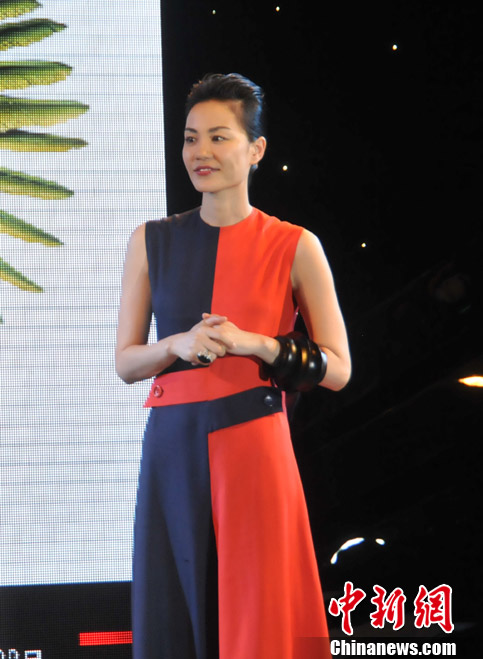 7月19日,王菲演唱会举行发布会。淡出歌坛五年的天后王菲身穿红黑色“八卦裙”现身,尽显高贵气质。中新网记者 田博川 摄