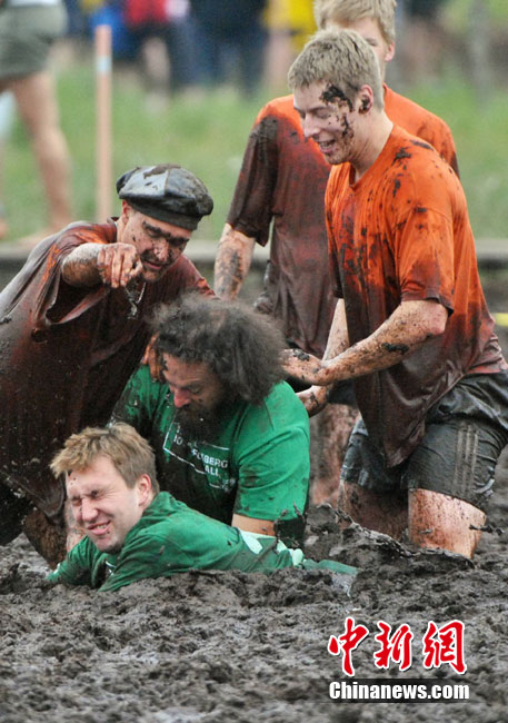 近日,在芬兰举行了一场沼泽足球世界杯赛。选手们在泥浆里进行足球比赛,踢得不亦乐乎。