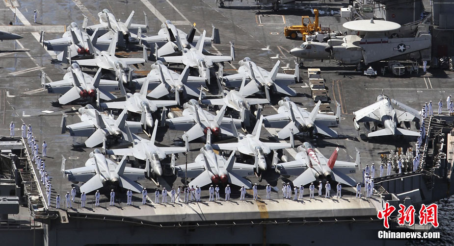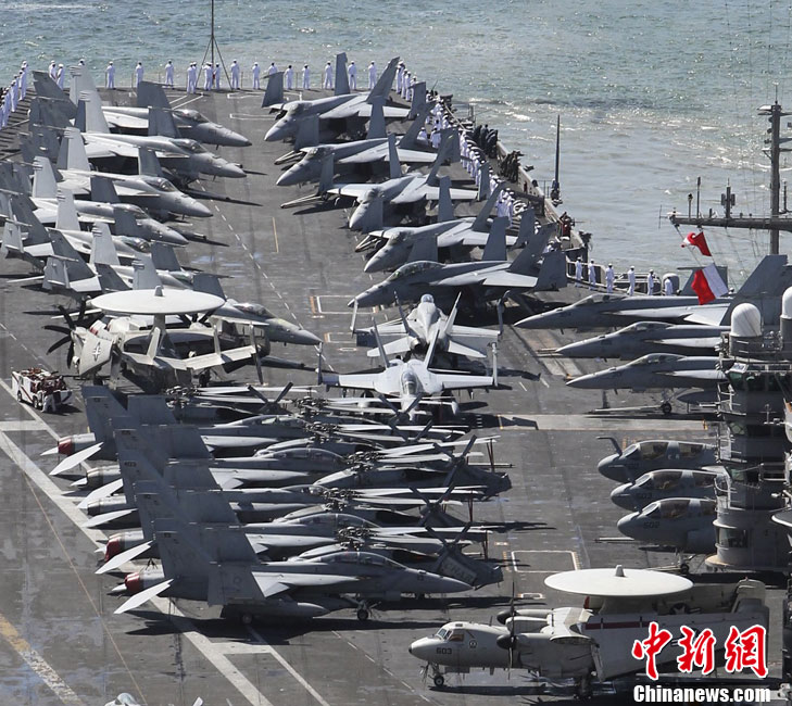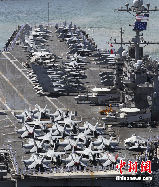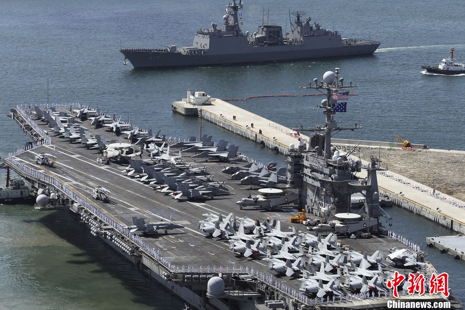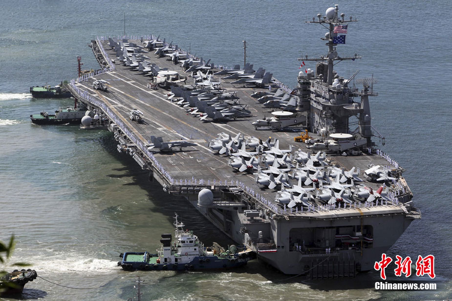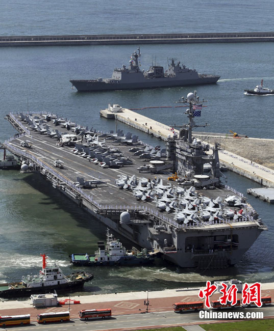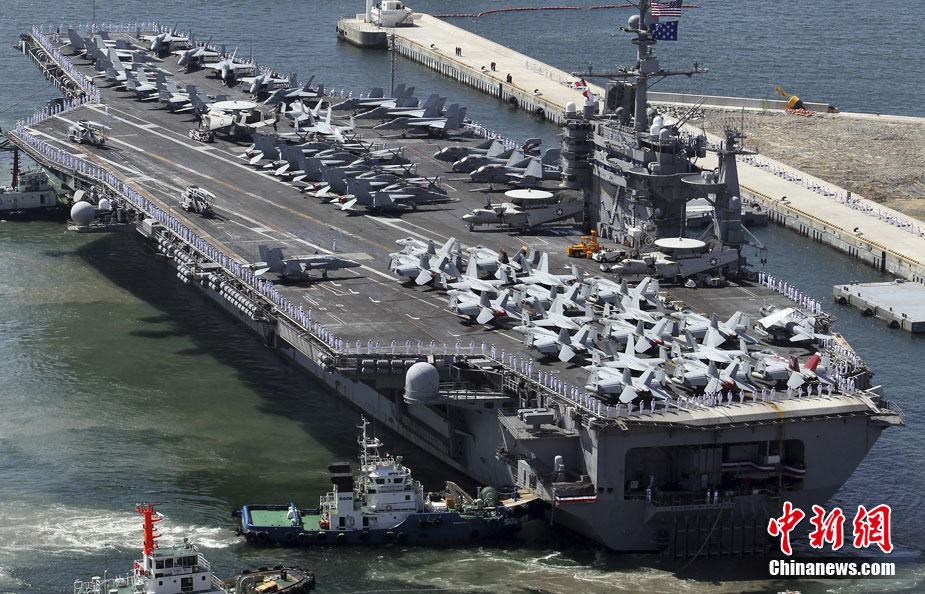 7月21日,参加韩美联合军事演习的美国航空母舰“乔治·华盛顿”号当日抵达韩国釜山港。