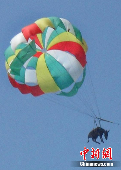 俄罗斯“跳伞驴”从天而降惊呆游客