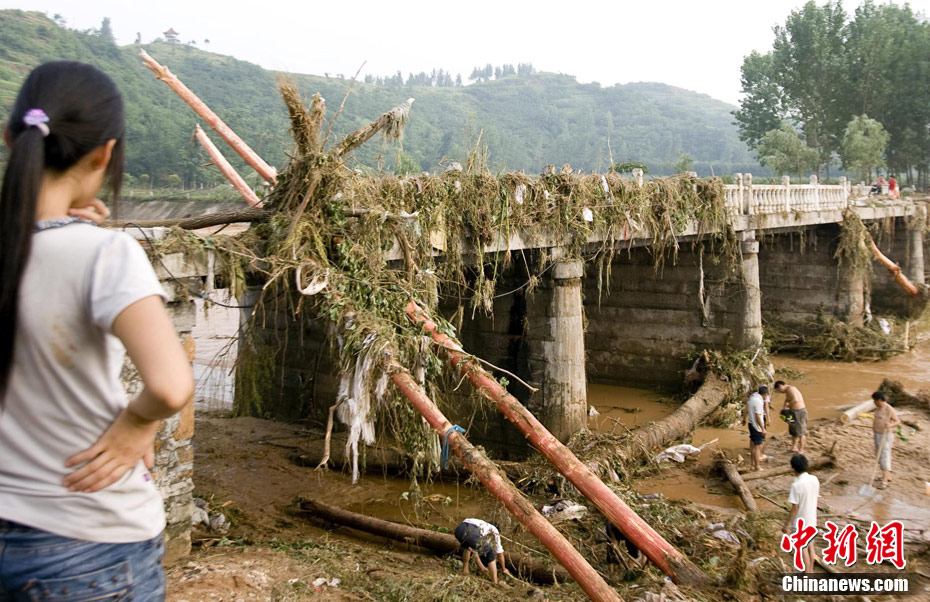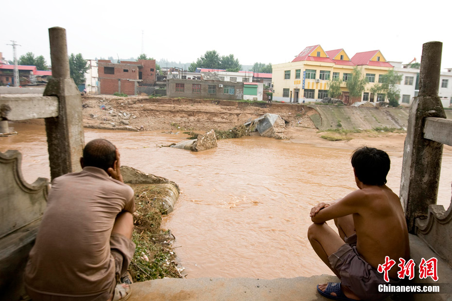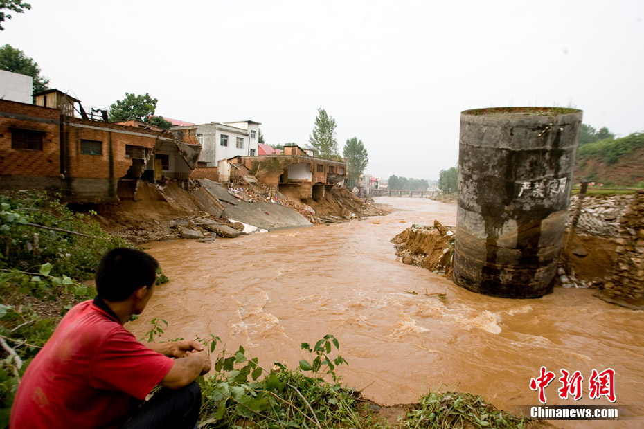 7月23日8时至25日8时,地处中原腹地的河南省遭强降雨袭击,致使部分地区房屋倒塌、良田被毁、通讯中断。河南省防汛抗旱指挥部25日公布的消息称,受降雨影响,该省丹江荆紫关水文站24日15时洪峰水位217.59米,洪峰流量10000立方米每秒,为新中国成立以来最大;老灌河西峡水文站24日17时30分洪峰水位84.31米,洪峰流量7380立方米每秒,亦为1949年以来最大。伊河陆浑水库25日8时水库蓄水位320.77米,超历史最高水位1.9米。中新社发 王中举 摄