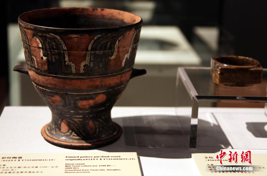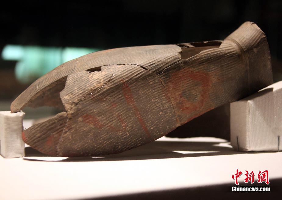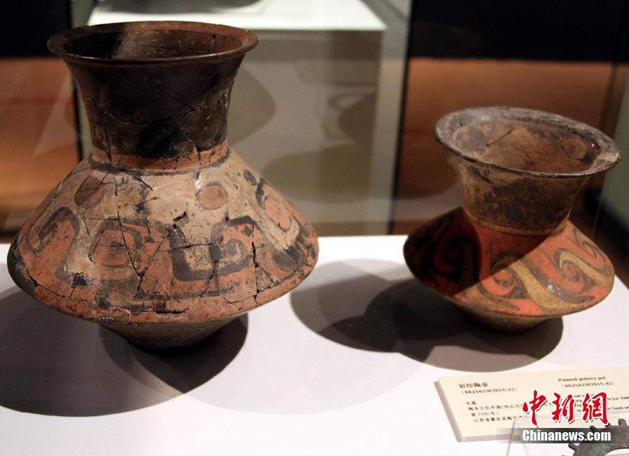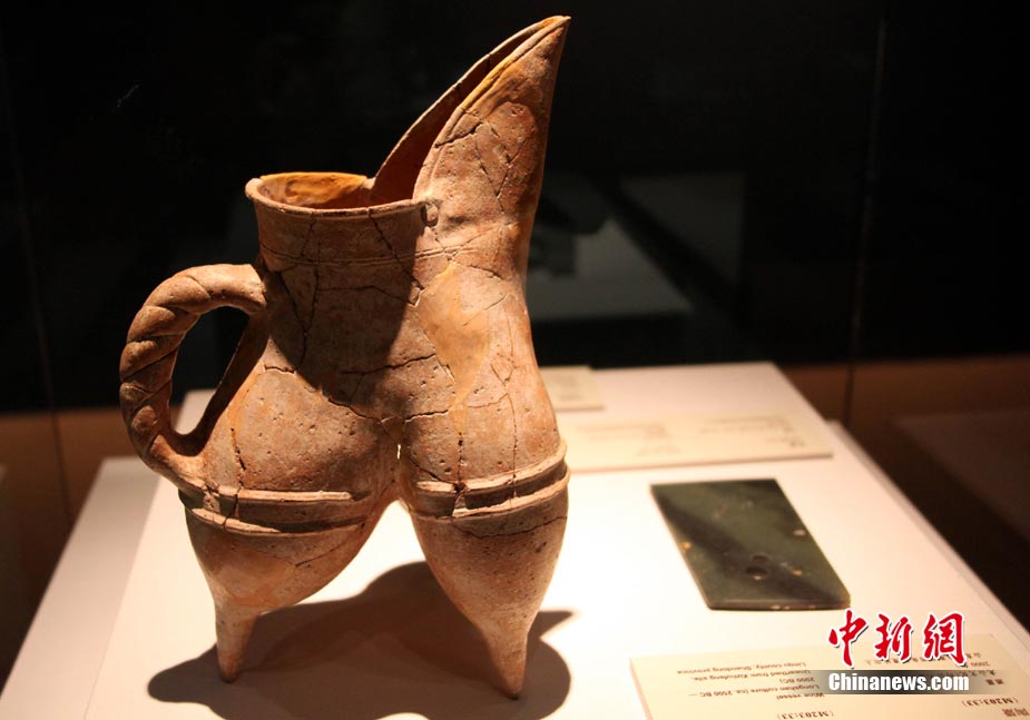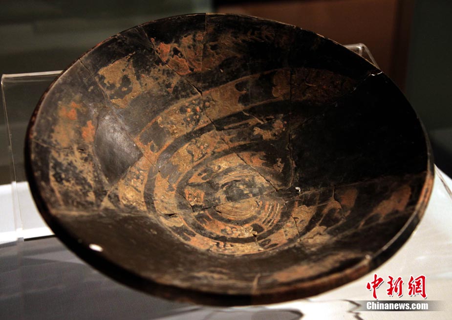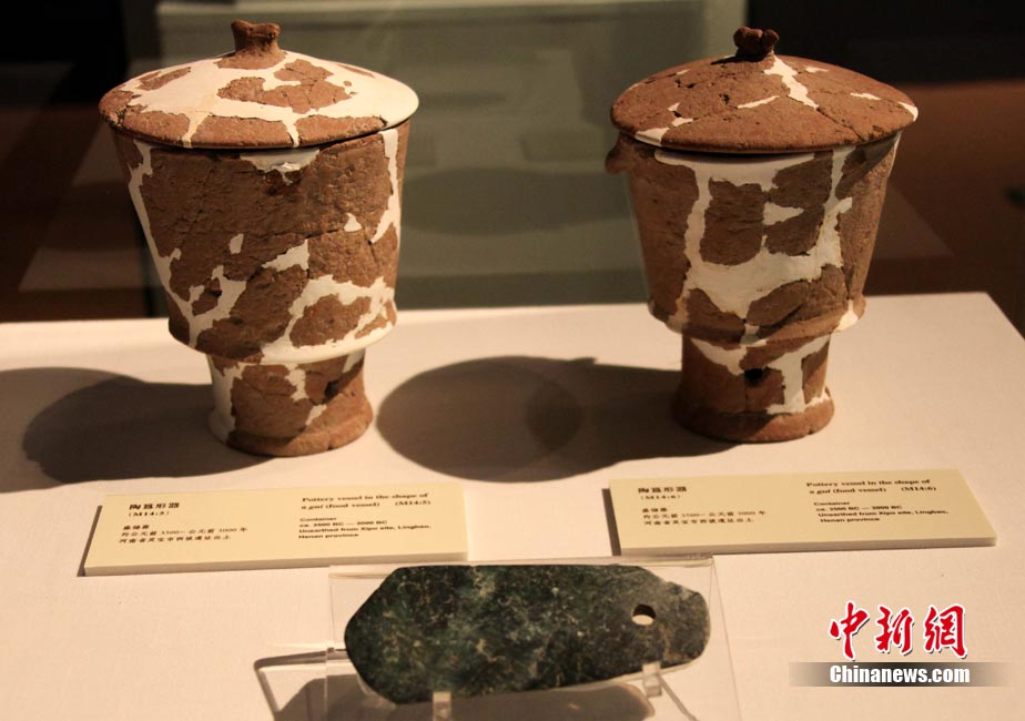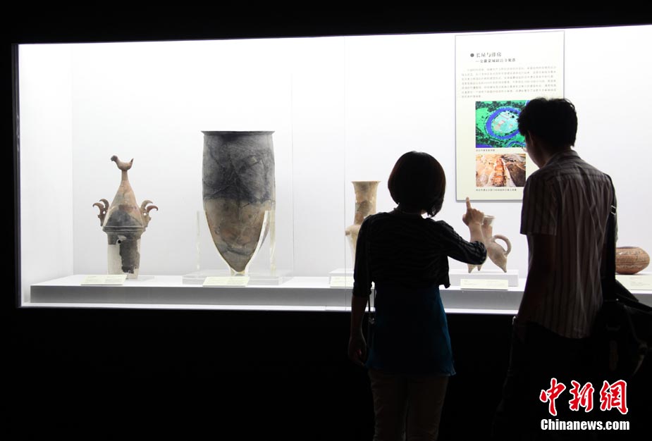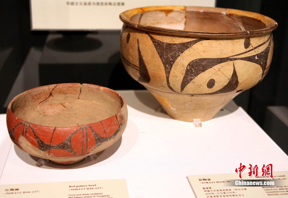 7月29日,中国社会科学院考古研究所与首都博物馆共同主办的“考古中华”展开展,展出的400多件珍贵出土文物中有7成以上为首次公开亮相。今年是中国社科院考古所成立60周年,作为该所甲子诞辰系列庆典活动之一,“考古中华”将展出60年来新中国前后四代数百位考古学家所获各种重要考古成果,堪称中国迄今举办规模最大的考古学专题展览。图为考古发掘出土的精美陶器。中新社记者 孙自法 摄