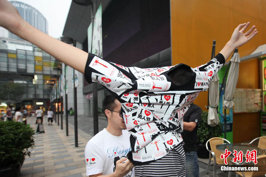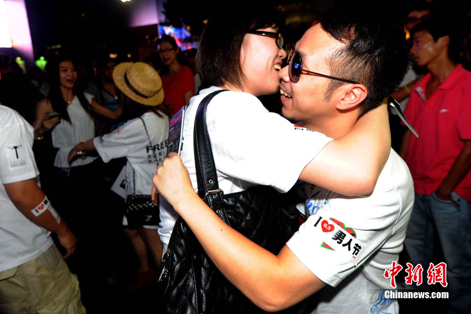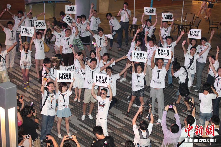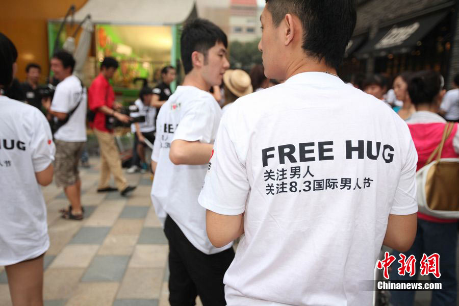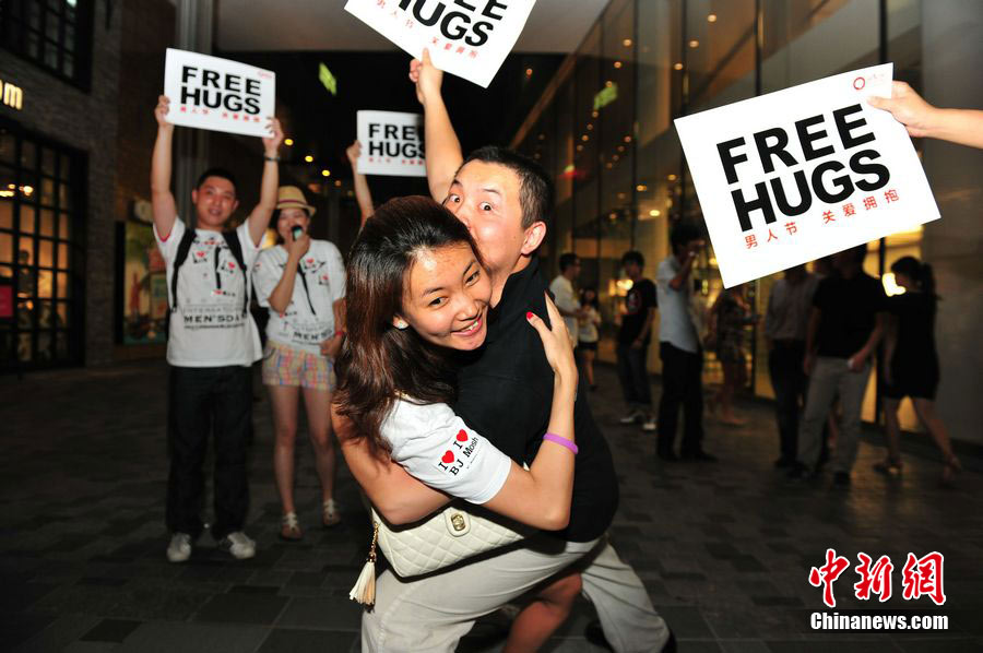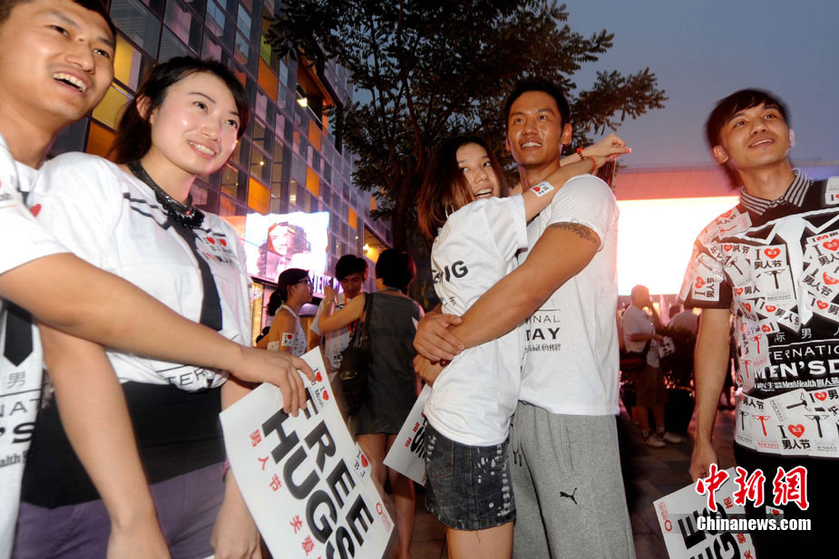 北京街头千人拥抱庆祝“8·3男人节”