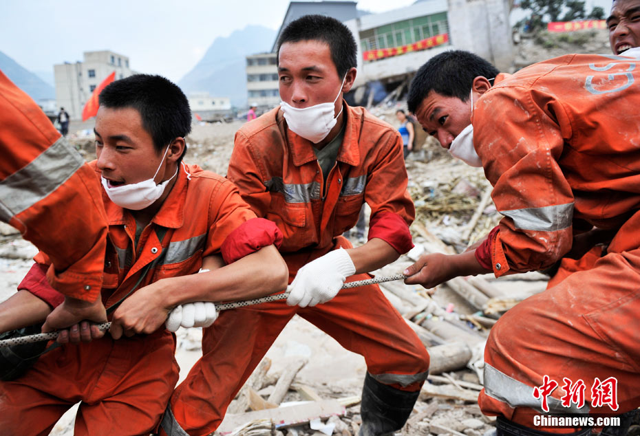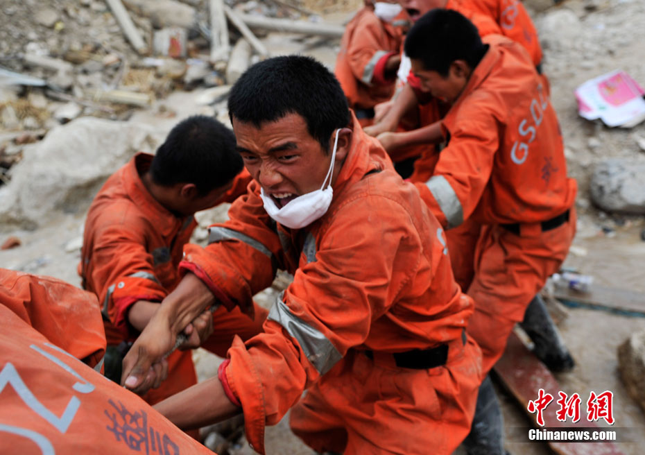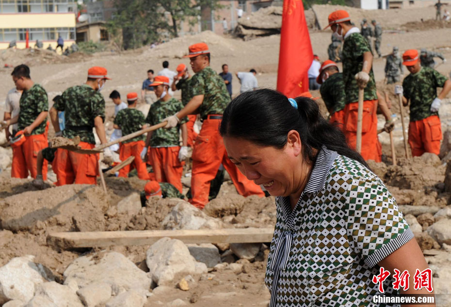 2010年8月11日,甘肃舟曲县发生特大泥石流灾害后的第四天,目前救援工作仍在继续。截至10日17时,泥石流灾害死亡人数已达702人,失踪人员1042人,42人重伤。中新网记者 金硕 摄