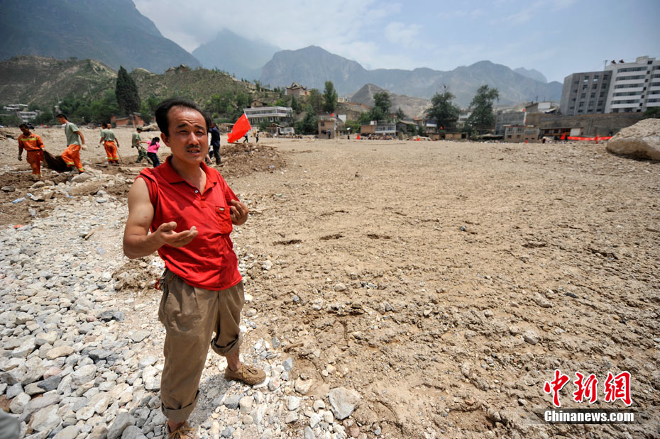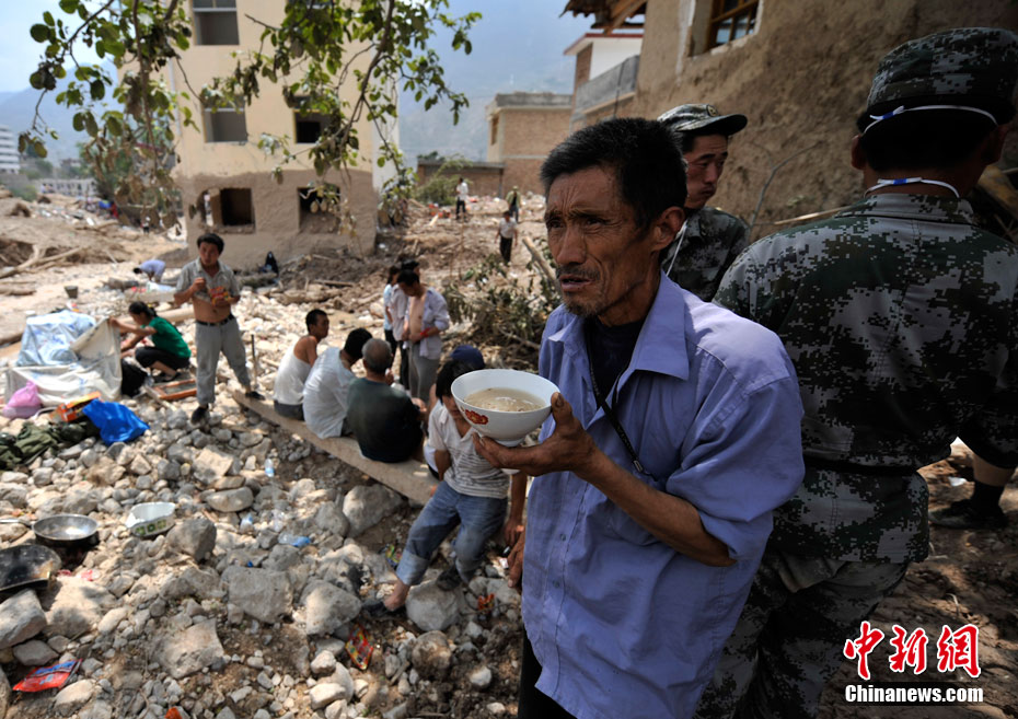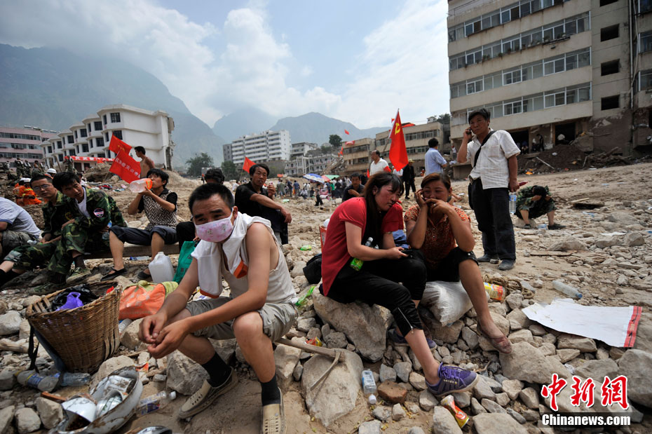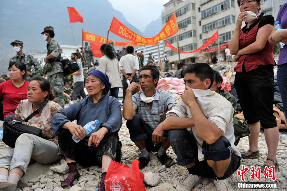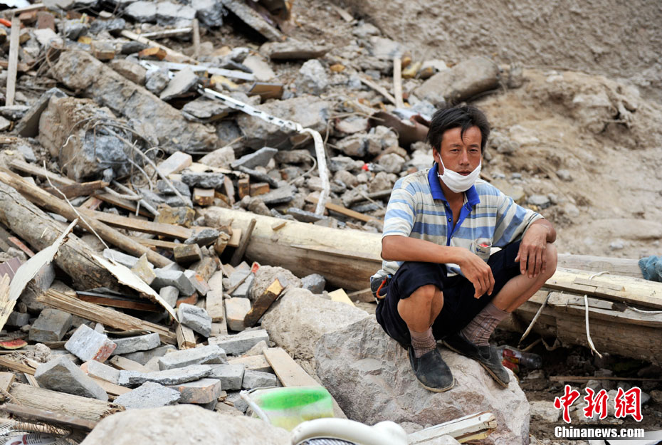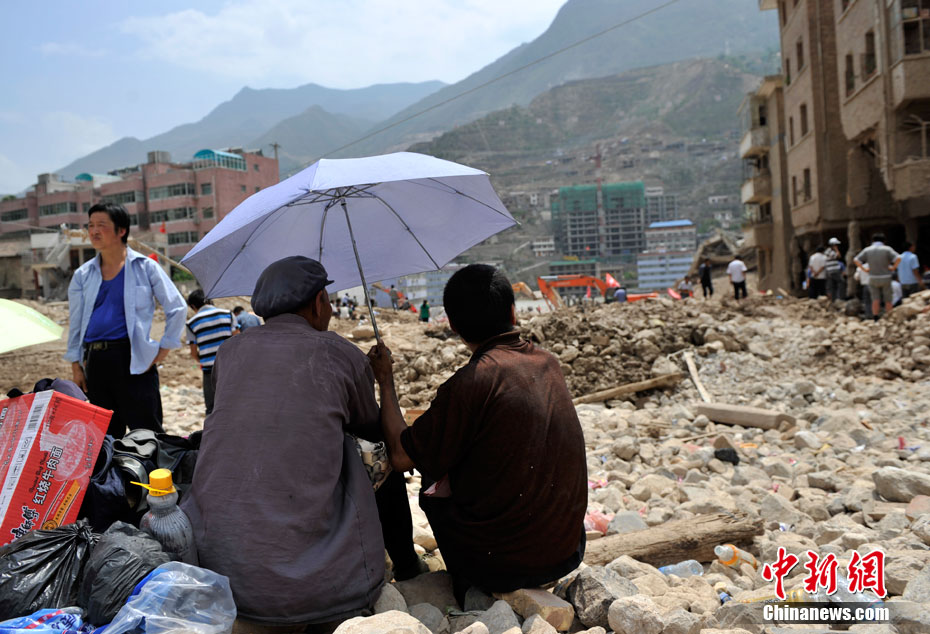 2010年8月11日,甘肃舟曲县发生特大泥石流灾害后的第四天,救援工作仍在继续。截至10日17时,泥石流灾害死亡人数已达702人,失踪人员1042人,42人重伤。随着救援工作的紧张进行,许多受灾民众在自己的家园附近苦苦守望,希望亲人奇迹生还,希望给逝者最后的尊严。中新网记者 金硕 摄