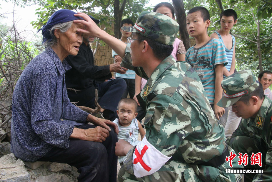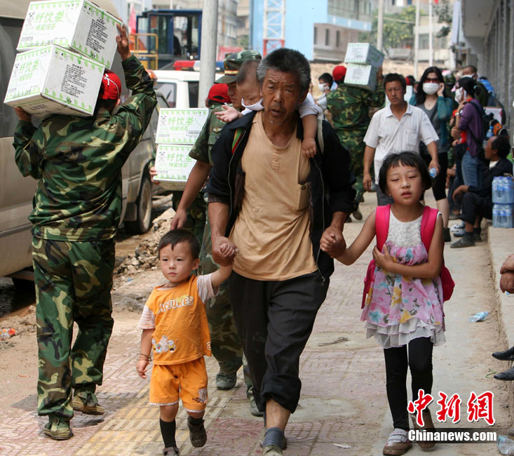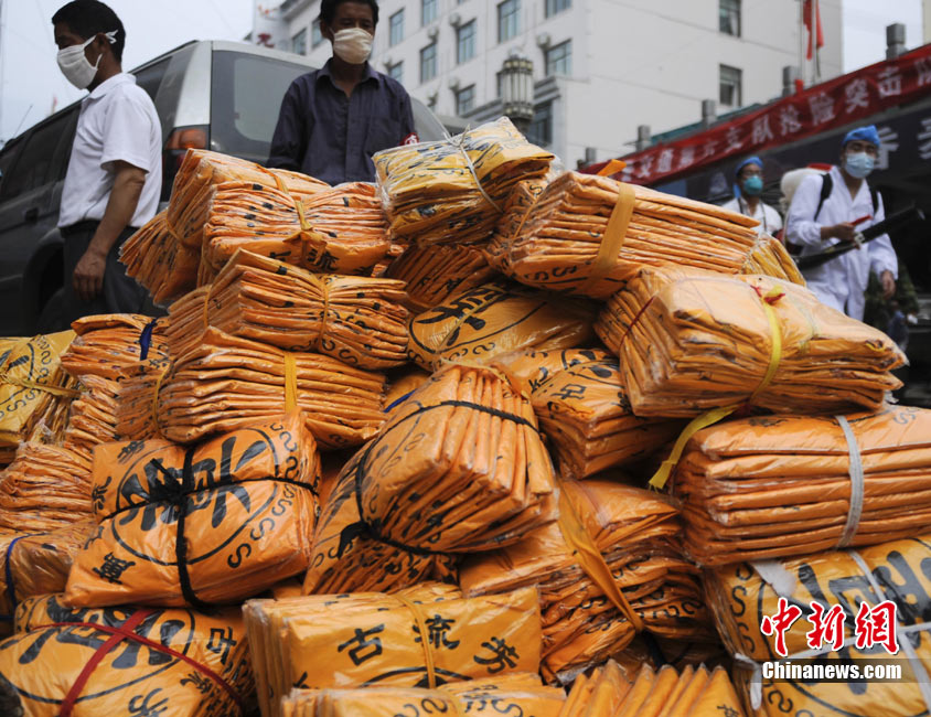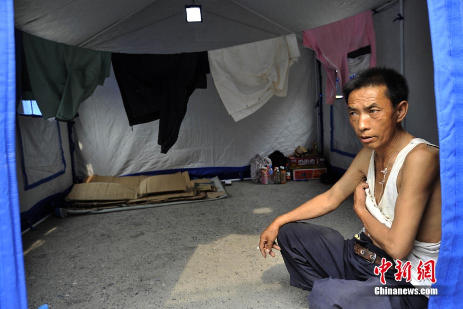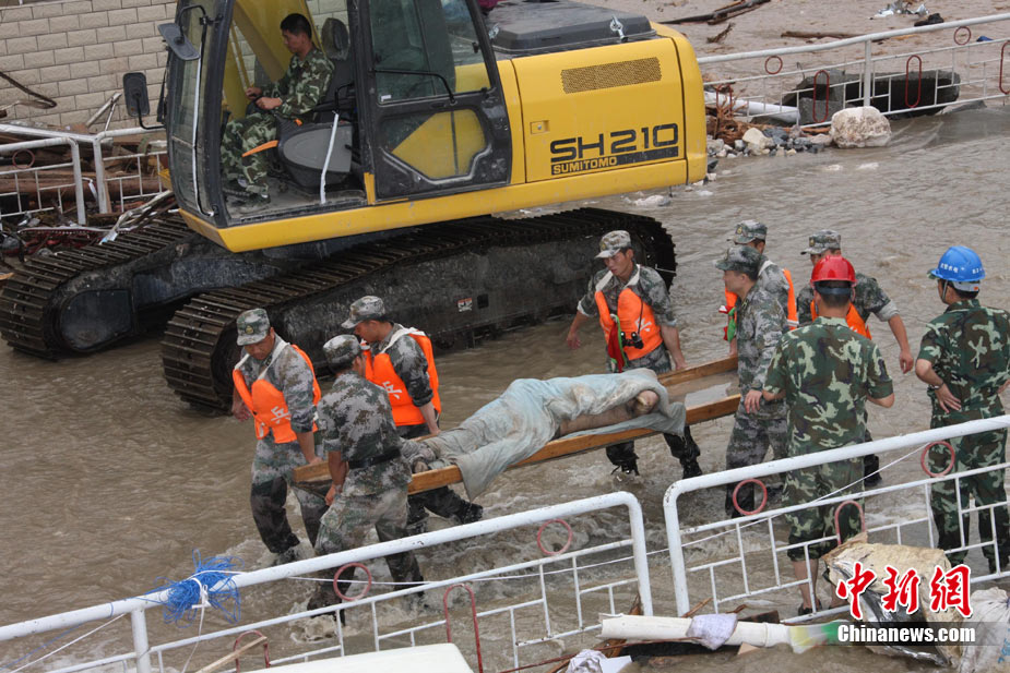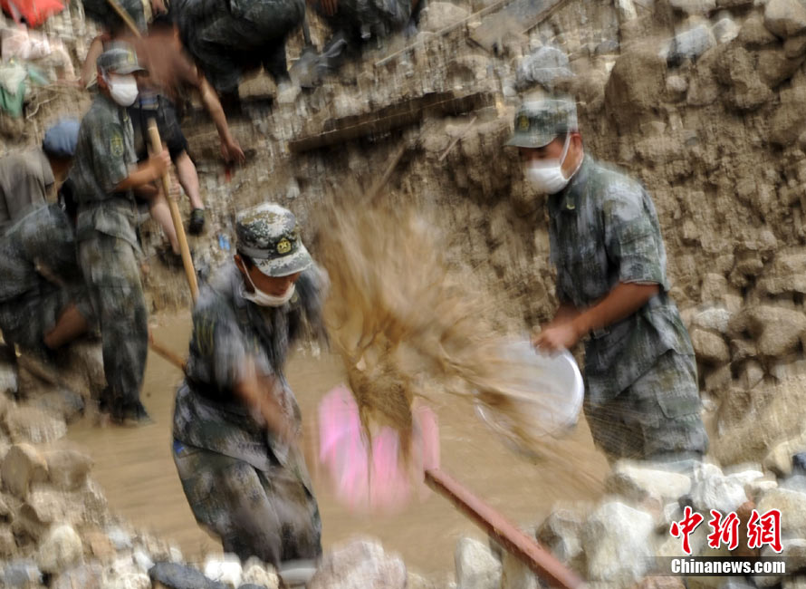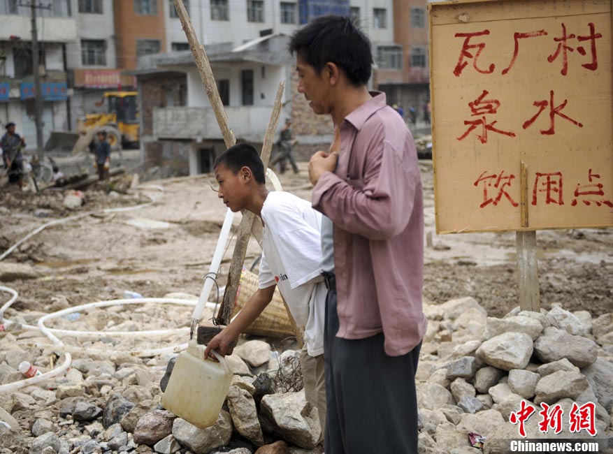 8月11日,甘肃舟曲泥石流灾区,五旬男子李九明从废墟中挖出了自家的户口簿、医疗保险证书等,看到证书夹层中遇难儿子生前的照片和身份证,不禁失声痛哭。中新社发 曹多然 摄