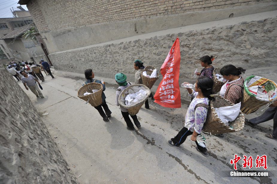 清晨8时许,舟曲锁儿头村的王旻桂和姐妹们来到城区。今天,她们的任务是将城区的生活垃圾清运出去。这是一支“背篓突击队”——“城区环境卫生清理突击队”的旗帜在王旻桂的背篓上飘扬。“背篓”这种当地村民用来搬运物品的日常工具,在救灾任务繁忙、交通不畅时,成为“利器”。
