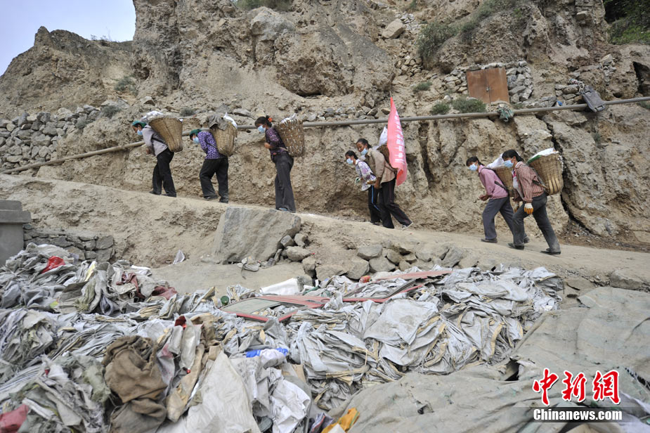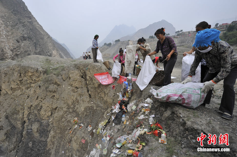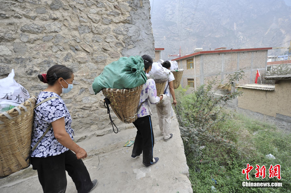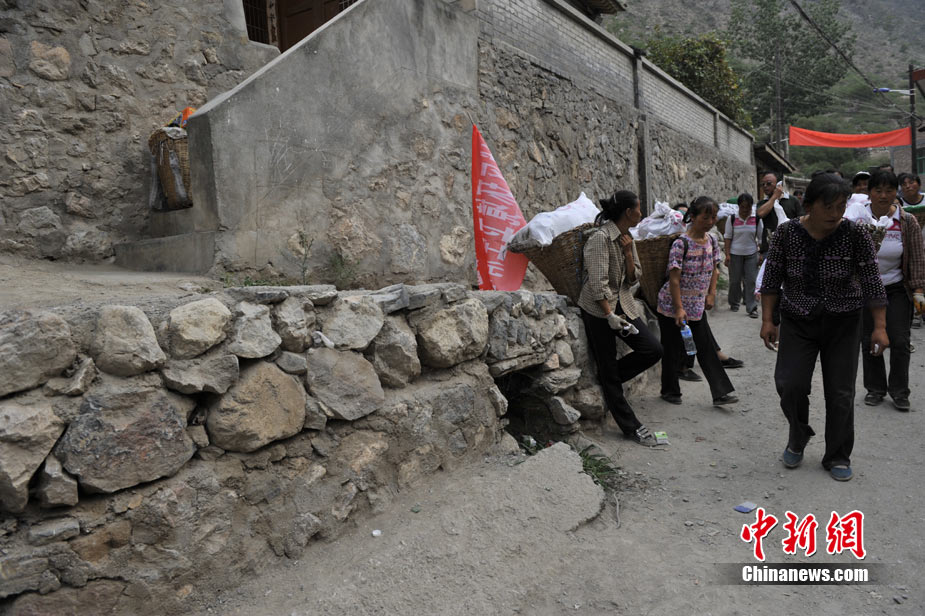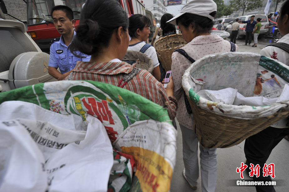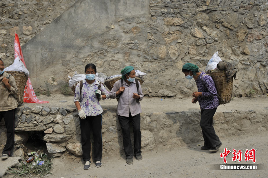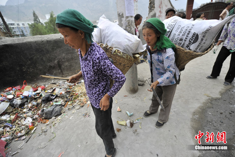 从早上8点到12点,一上午这支“突击队”来回四趟,天气炎热,虽然对地形非常熟悉,她们休息的次数越来越多,步子也慢了起来。休息间歇,记者问起,这次清运垃圾政府会不会给些工资,大家都笑而不语。“给不给钱无所谓,发生这么大的事情,帮点忙也是应该的。”严邝条对记者说。