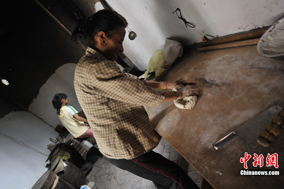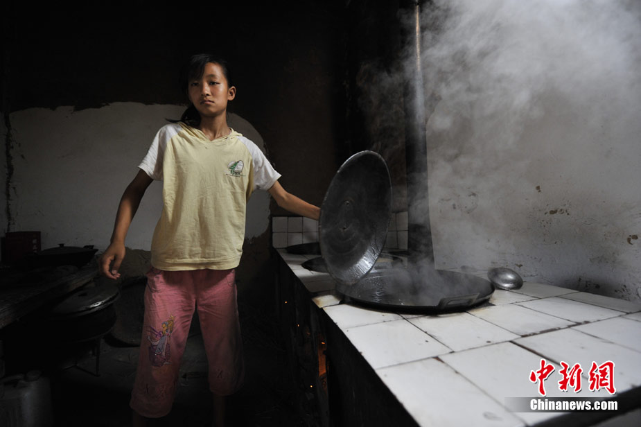王旻桂的丈夫,因为早上去帮忙救灾弄伤了腿,她到家时饭还没做。洗洗手后,王旻桂立即招呼两个孩子开始准备午饭,生火、揉面……,不一会,西北特色的汤面片就已经上桌。