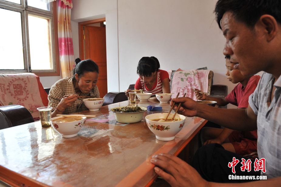 到了午饭时间,“突击队”队员们盛情邀请记者去家里吃饭。“我给你们做酸菜面。”刘梅先乡音浓重,还需要经过“翻译”,记者才能听懂她的话。刘梅先对“北京来的记者”颇为好奇,说她丈夫还专门想找记者给拍张照片。看她口渴四处找水喝,记者送给她一瓶,她却舍不得喝,揣了起来。