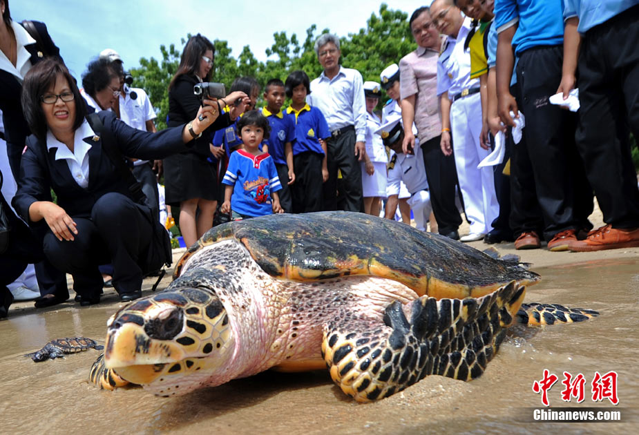 12日是泰国王后诗丽吉的78岁生日,泰国各地纷纷举行活动庆祝王后生日。图为一家海龟保护中心,专门举行活动将700多只海龟放归海洋,为庆祝泰国王后生日。