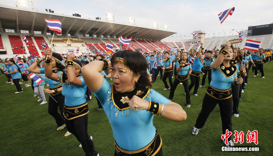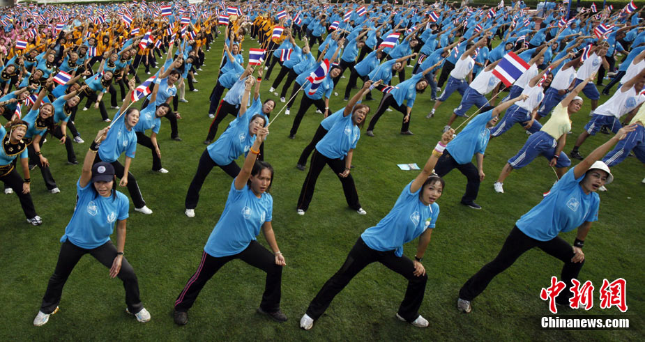 泰国民众做操、放生海龟为王后庆生日
