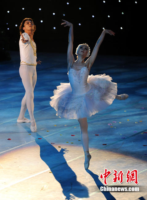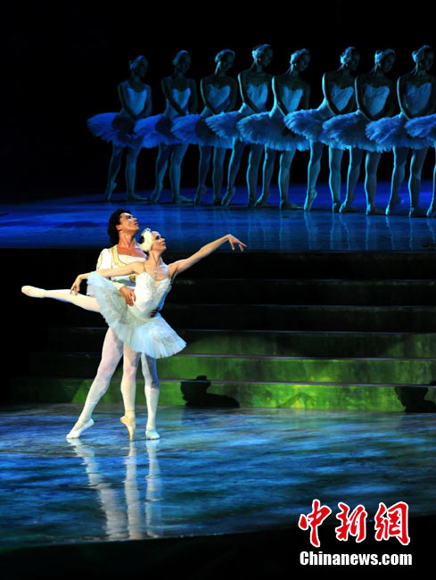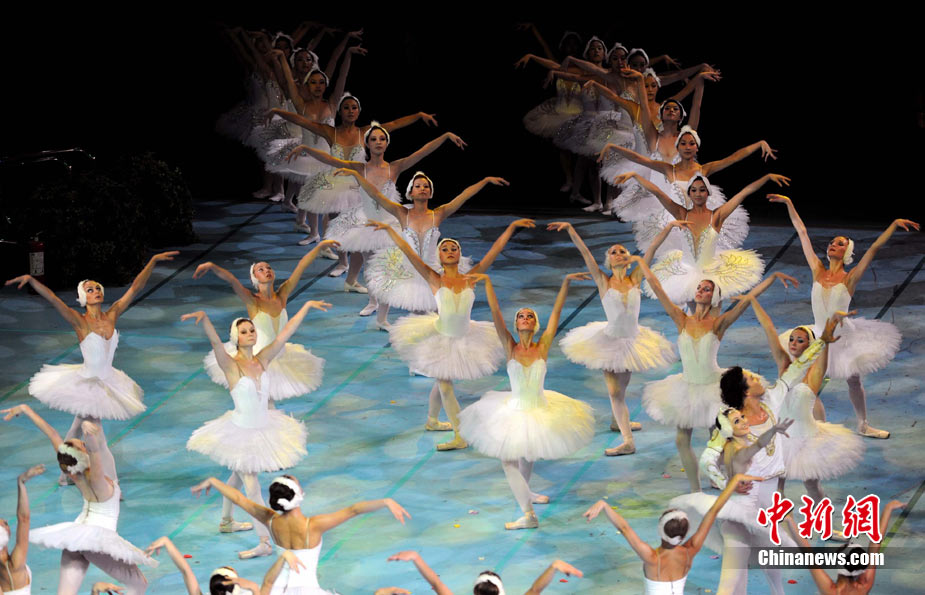 8月13日晚,大型全景芭蕾秀《天鹅湖》,在重新开幕的北京“水立方”成功举行了首场演出。此次全景芭蕾秀《天鹅湖》(新版)将芭蕾、花泳、跳水、国标舞、柔术、肩芭、杂技及空中特技八大梦幻元素完美融合,秀出芭蕾艺术新魅力。此次演出由莫斯科城市芭蕾舞团领衔,聚集国内外顶尖演员,为观众奉献一场全新演绎、震撼不断的新版“梦幻水立方”全景芭蕾秀。中新社发 刘震 摄