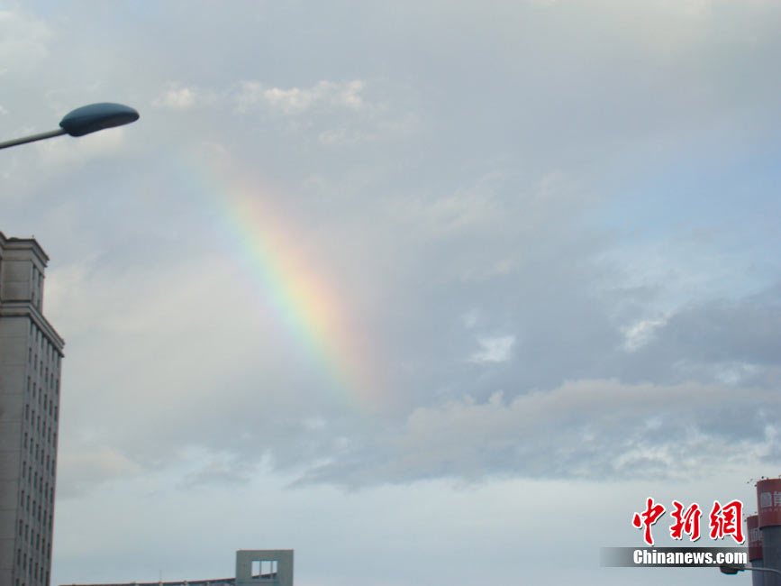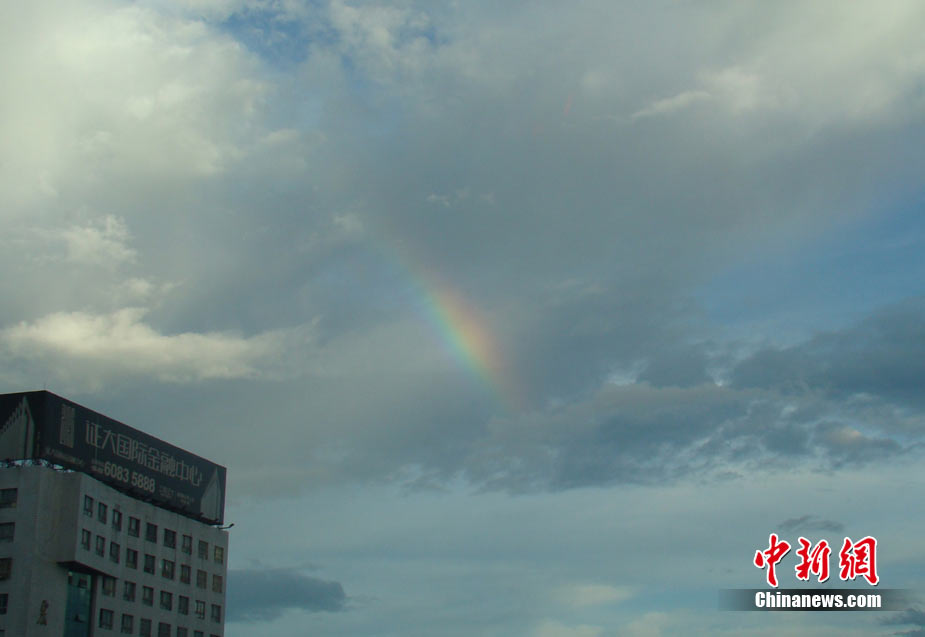 14日18时30分许,海口市府城镇方向上空现“半截”彩虹天象,持续时间约半小时。中新社发 付美斌 摄