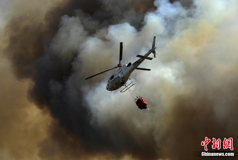 西班牙森林大火肆虐 浓烟遮天蔽日
