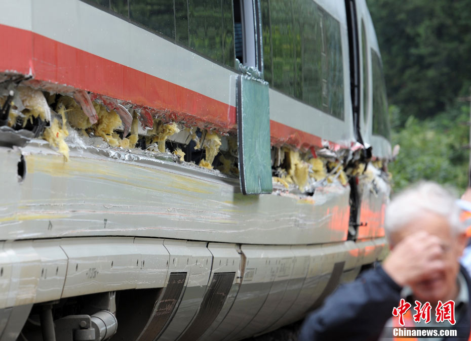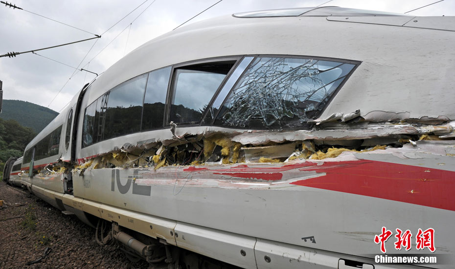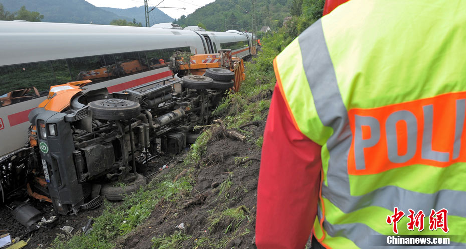 8月17日,德国法兰克福西南部,一辆高速列车与垃圾车相撞之后部分出轨,车体损毁严重,至少造成10人受伤。