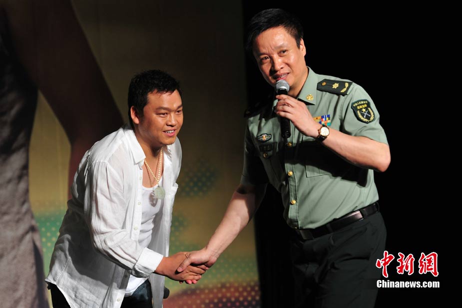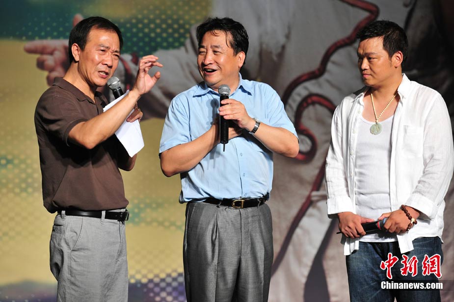 8月17日,被誉为“西部歌王”的原生态歌手高保利首张专辑《极域天音》在北京发布。著名歌唱家、艺术家王昆、徐沛东、姜昆、戴志诚到场祝贺,和高保利同为山西人的阎维文、谭晶上台力挺老乡让高保利十分激动。图为姜昆(中)和老搭档戴志诚(左)现场不忘逗乐。中新社记者 李学仕 摄