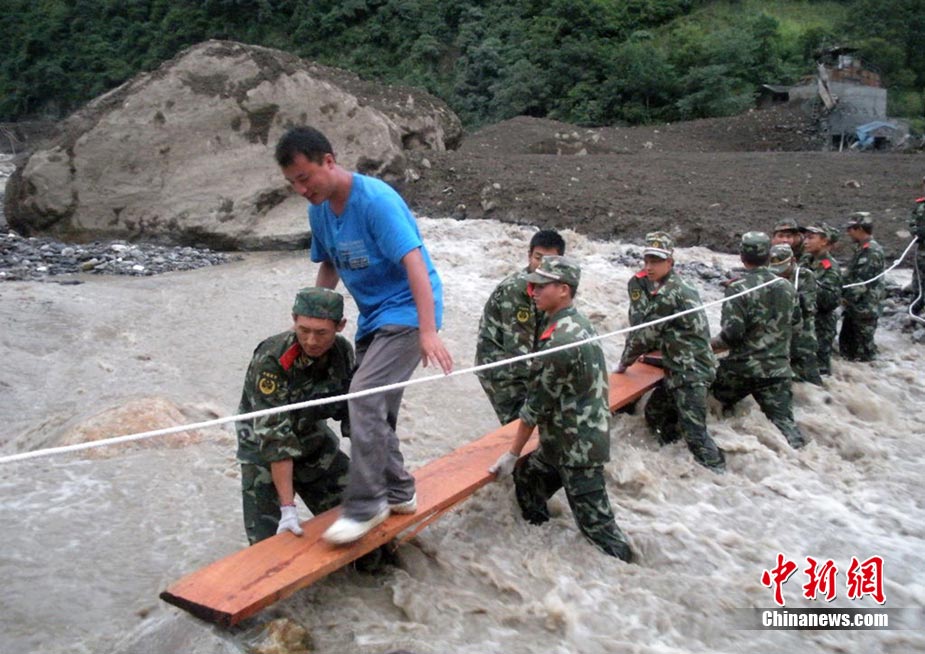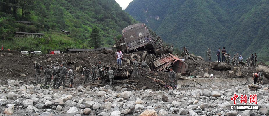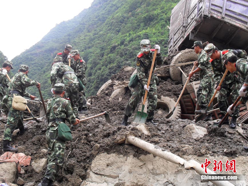 8月19日,中央气象台消息,“8.18”云南贡山县普拉底乡泥石流灾害地区会有中雨,降雨将给救援工作带来难度。图为武警云南总队怒江支队官兵在灾区按照救援计划实施救援。 中新社发 陈庆祥 郝亚鑫 摄 图片来源:CNSPHOTO