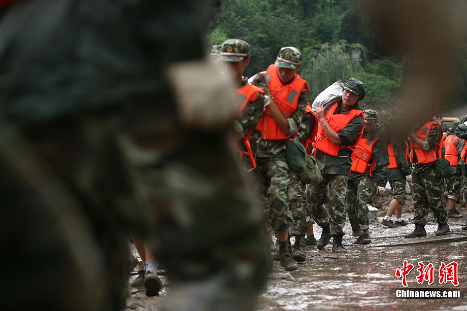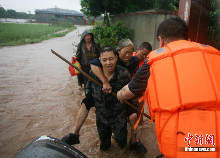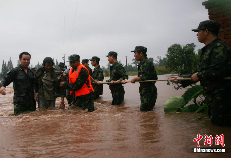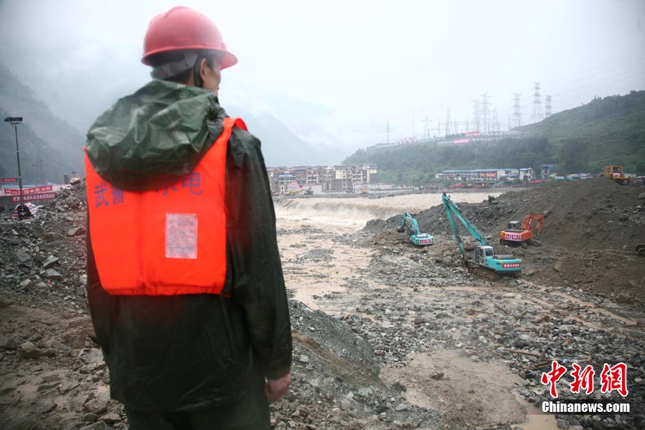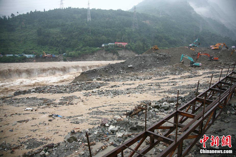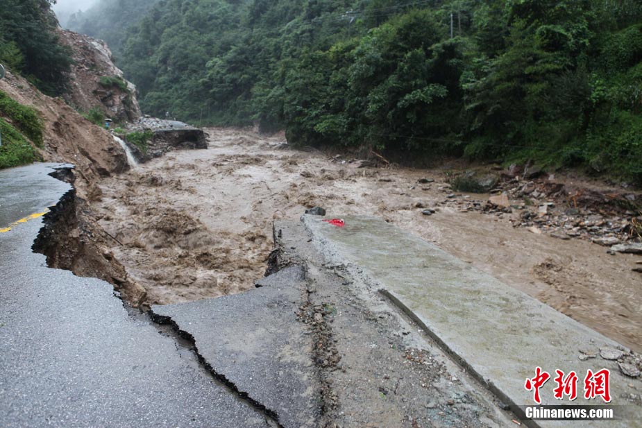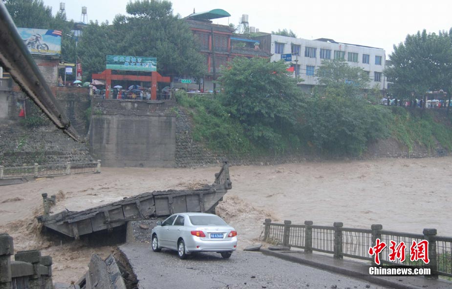 8月19日9时20分左右,四川成都崇州市怀远镇场镇老定江桥发生垮塌,桥面坍塌三孔,100余米桥身陷入河中,初步断定两人失踪。截至目前,已打捞起失踪人员一名。据了解,造成此次大桥局部垮塌的原因是受连夜暴雨,洪水不断冲刷,造成桥基悬空,以致桥面垮塌。 中新社发 崇宣 摄