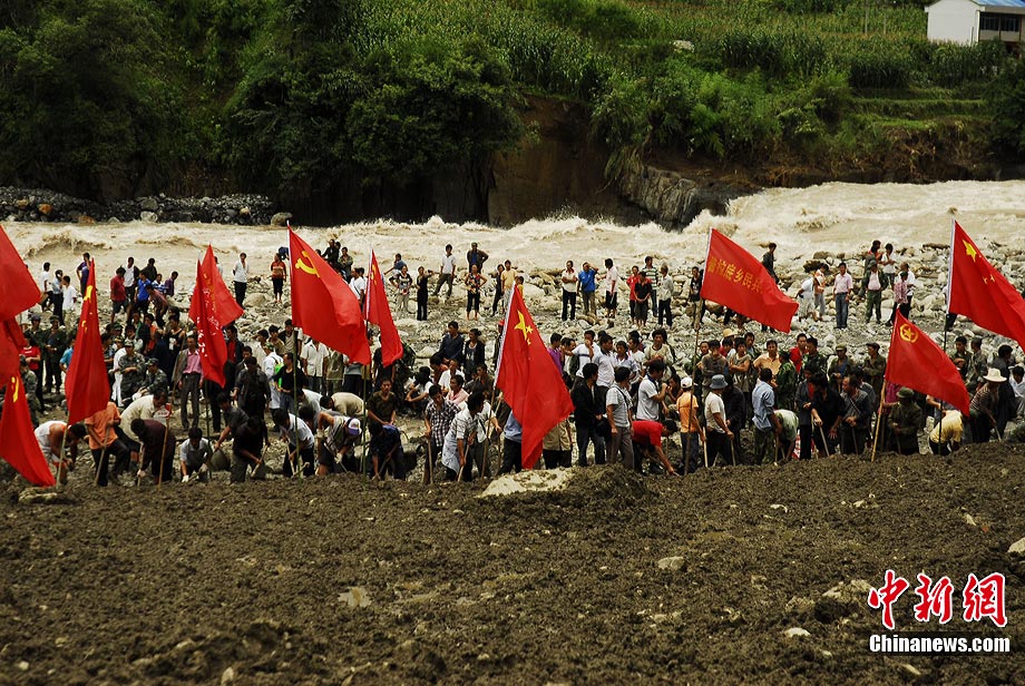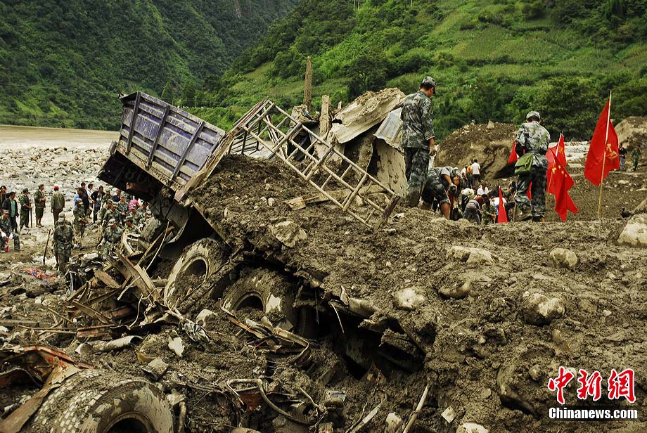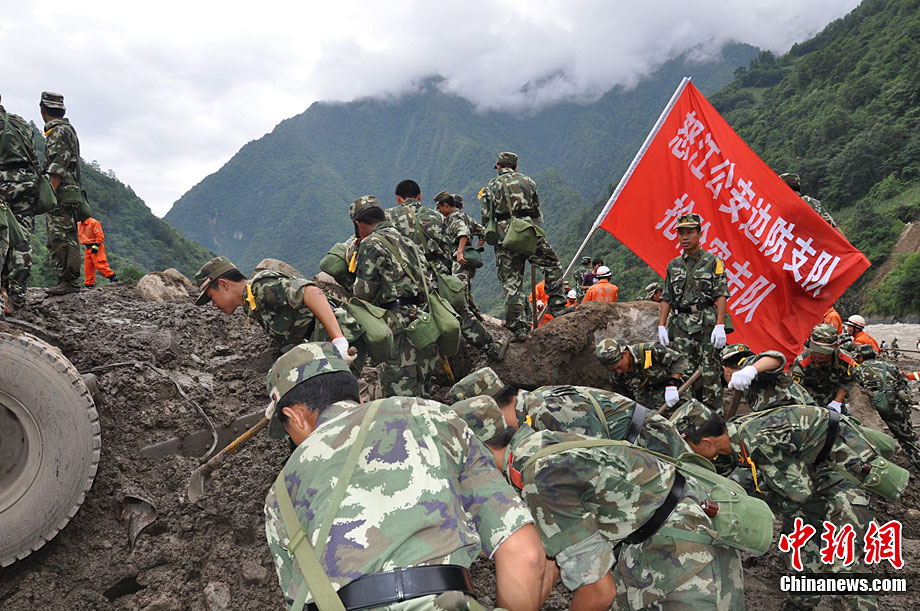 8月18日凌晨1时30分左右,怒江傈僳族自治州贡山独龙族怒族自治县普拉底乡突发泥石流,造成重大人员伤亡和巨大财产损失。事故发生后,有各级部门组成的救援组立即展开搜救工作。图为救援队正在搜救失踪人员。中新社发 田洪 摄